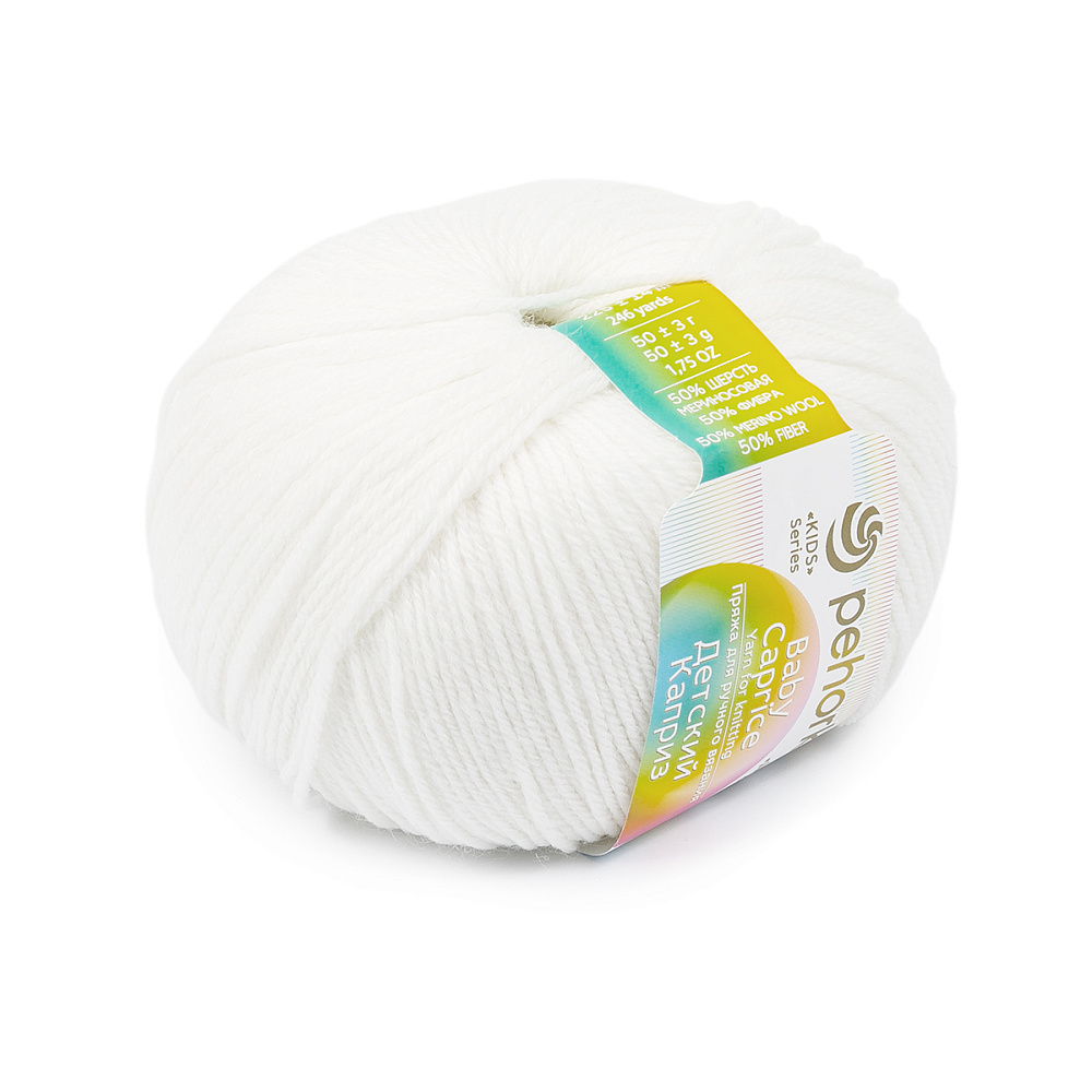 Пряжа Пехорка Детский каприз / уп.10 мот. по 50 г, 225 м, 001 белый