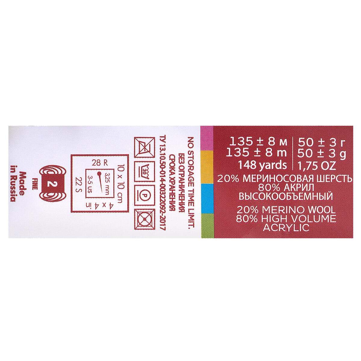 Пряжа из Троицка 'Кроха' прекрасно подходит для вязания детских вещей, носков, кардиганов, свитеров и жилетов. В составе 20% ценной шерсти мериноса – ее волокна длинные, очень тонкие и эластичные. Изделия с мериносом прекрасно согревают, не вызывают раздражения или аллергии, что так важно для нежной кожи ребенка. К шерсти добавлено акриловое волокно – оно придает нити дополнительную мягкость и пластичность, позволяет сохранять форму вещей после ношения и стирок. Рекомендуемые спицы / крючок №3,5. Толщина нити: средняя. Размер: 50 г / 135 м. Состав: 20% шерсть мериноса, 80% акрил.