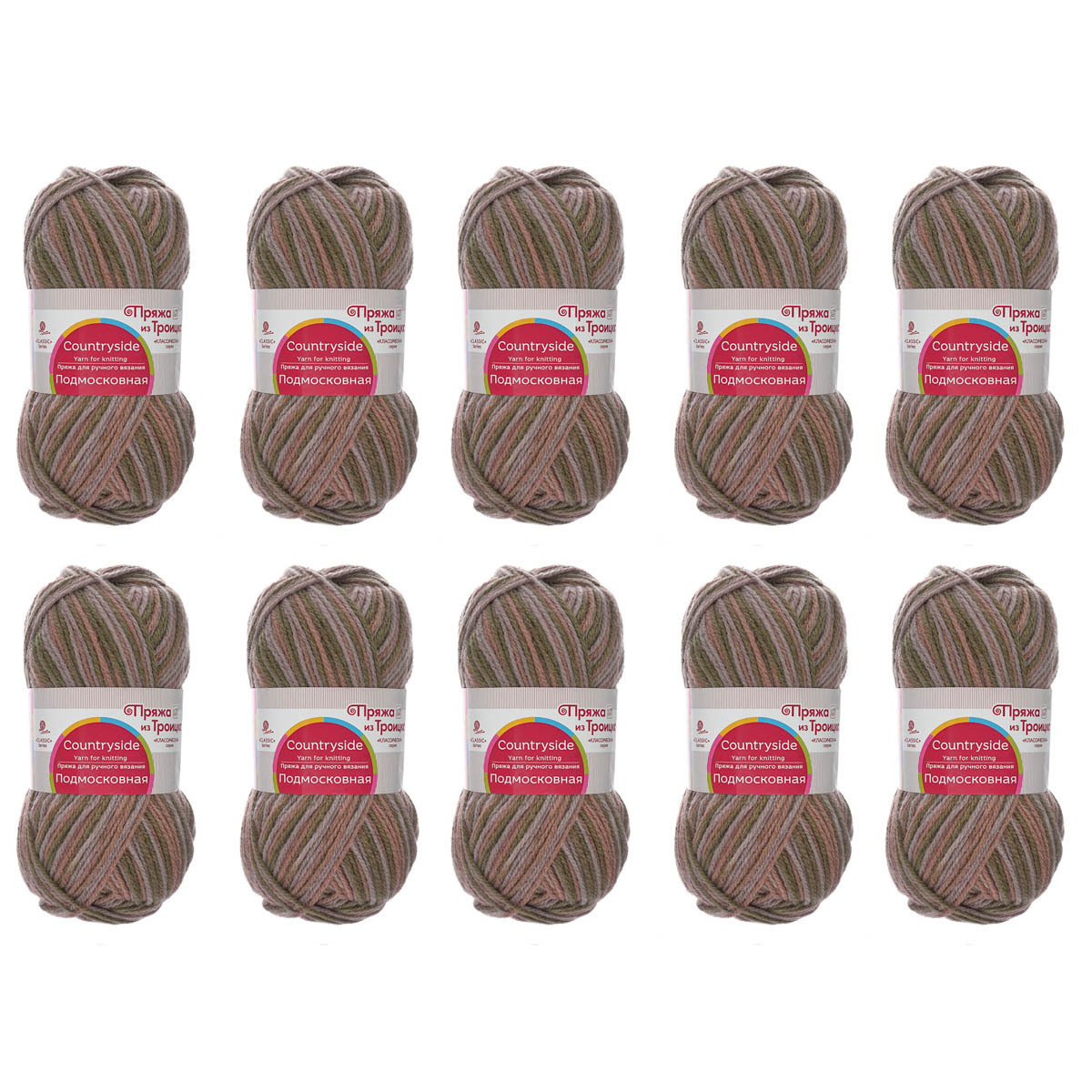 Пряжа Троицкая Подмосковная принт секционный / уп.10 мот. по 100 г, 250 м, 1573М, мох/сиренево-серый мел./кофе