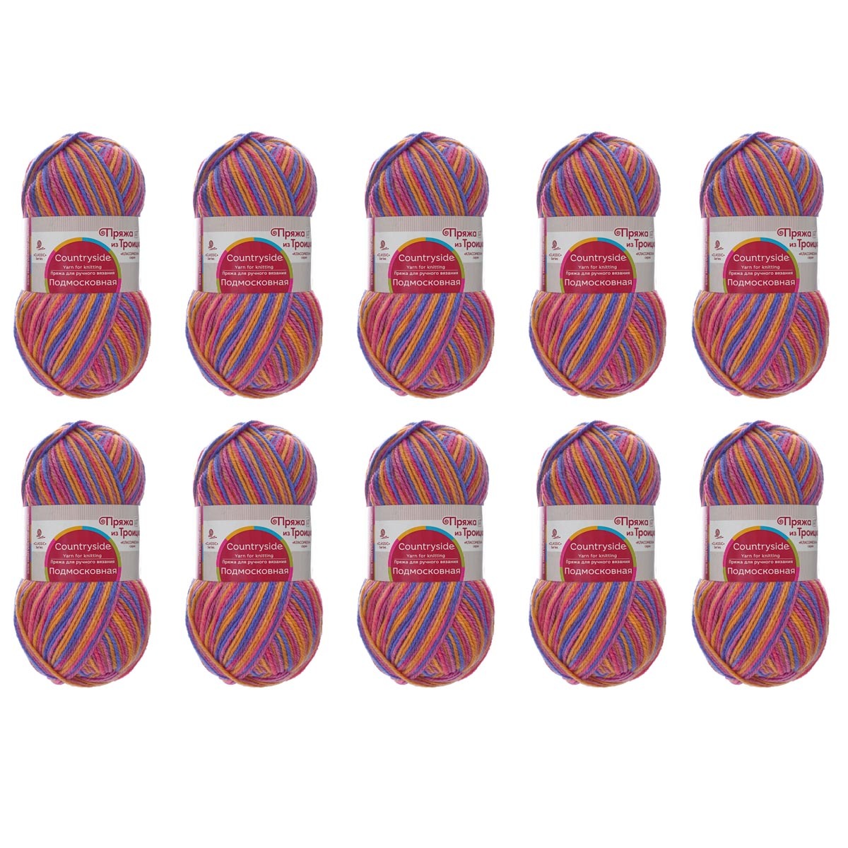 Пряжа Троицкая Подмосковная принт секционный / уп.10 мот. по 100 г, 250 м, 2607 секционный