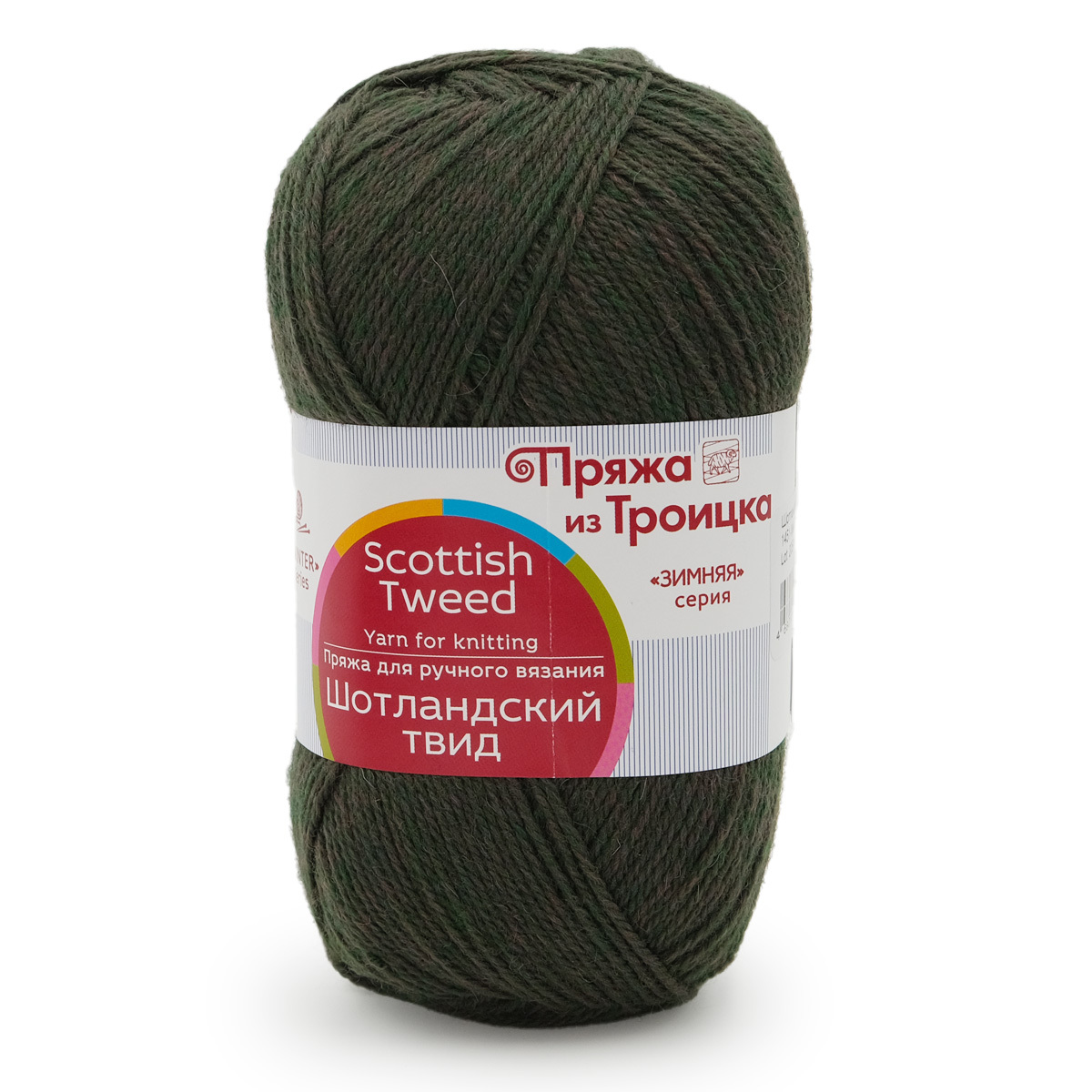Пряжа Троицкая Шотландский твид / уп.10 мот. по 100 г, 360 м, 1451 меланж тайга