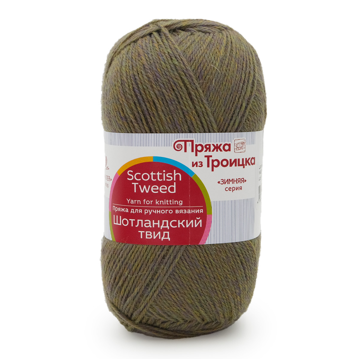 Пряжа Троицкая Шотландский твид / уп.10 мот. по 100 г, 360 м, 1453 меланж хаки