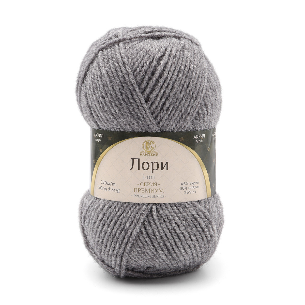 Пряжа Камтекс Лори / уп.5 мот. по 50 г, 170 м, 169 серый, 625650-7