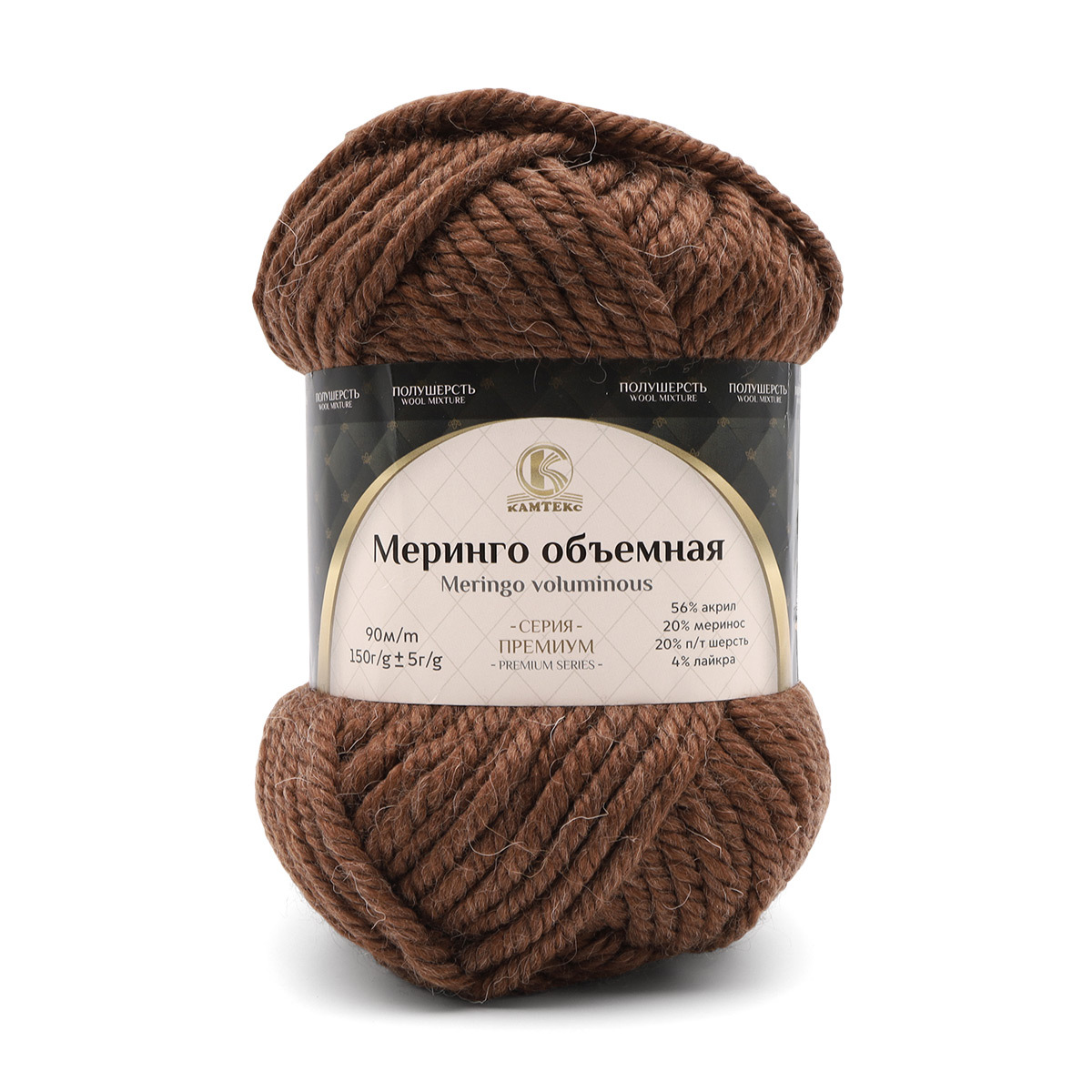 Пряжа Камтекс Меринго объемная / уп.4 мот. по 150 г, 90м, 121 коричневый