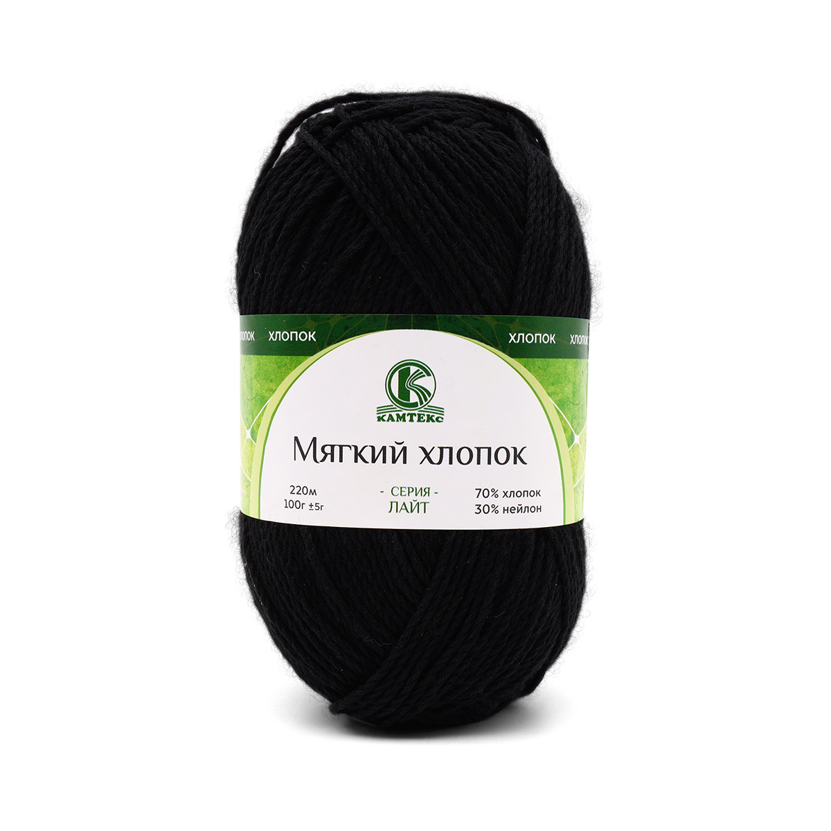 Пряжа Камтекс Мягкий хлопок / уп.10 мот. по 100 г, 220 м, 003 черный