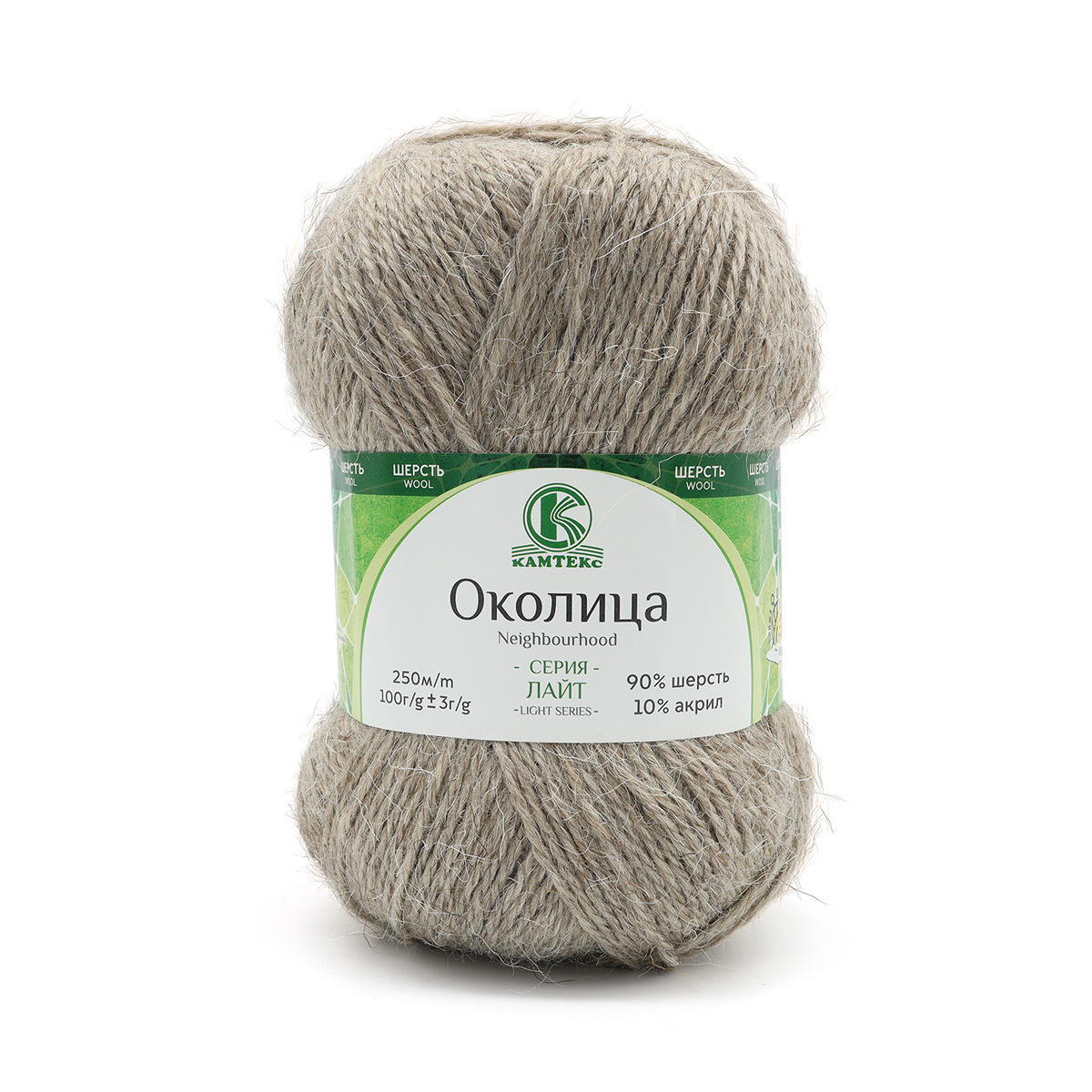 Околица' – это настоящая слабо обработанная овечья шерсть, достаточно тонкая, слабой крутки с выраженным ворсом. Нить классической крутки, состоит из трех нитей, имеет выраженный пушок. Представлена в натуральных цветах и оттенках, мягкая, но слегка колючая. Рекомендуется для вязания согревающих поясов, жилеток, носков. Подходит в первую очередь для носков. Благодаря шерсти ноги потеют меньше. Благодаря акрилу шерсть укреплена, носки дольше сохраняют первоначальный вид. Для прочности и устойчивости к износу в нить добавлен акрил. При правильном уходе вязаное полотно не дает усадки, после стирки изделие становится немного мягче. Изделия стирать вручную при 30 градусах. Состав: 90% шерсть, 10% акрил. Толщина нити: средняя. Рекомендуемые спицы/крючок: №4-6.