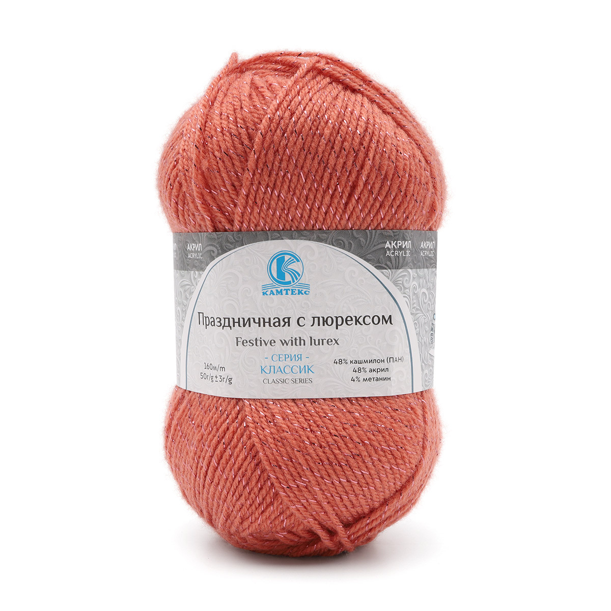 Пряжа Камтекс Праздничная с люрексом / уп.10 мот. по 50 г, 160 м, 050 коралл