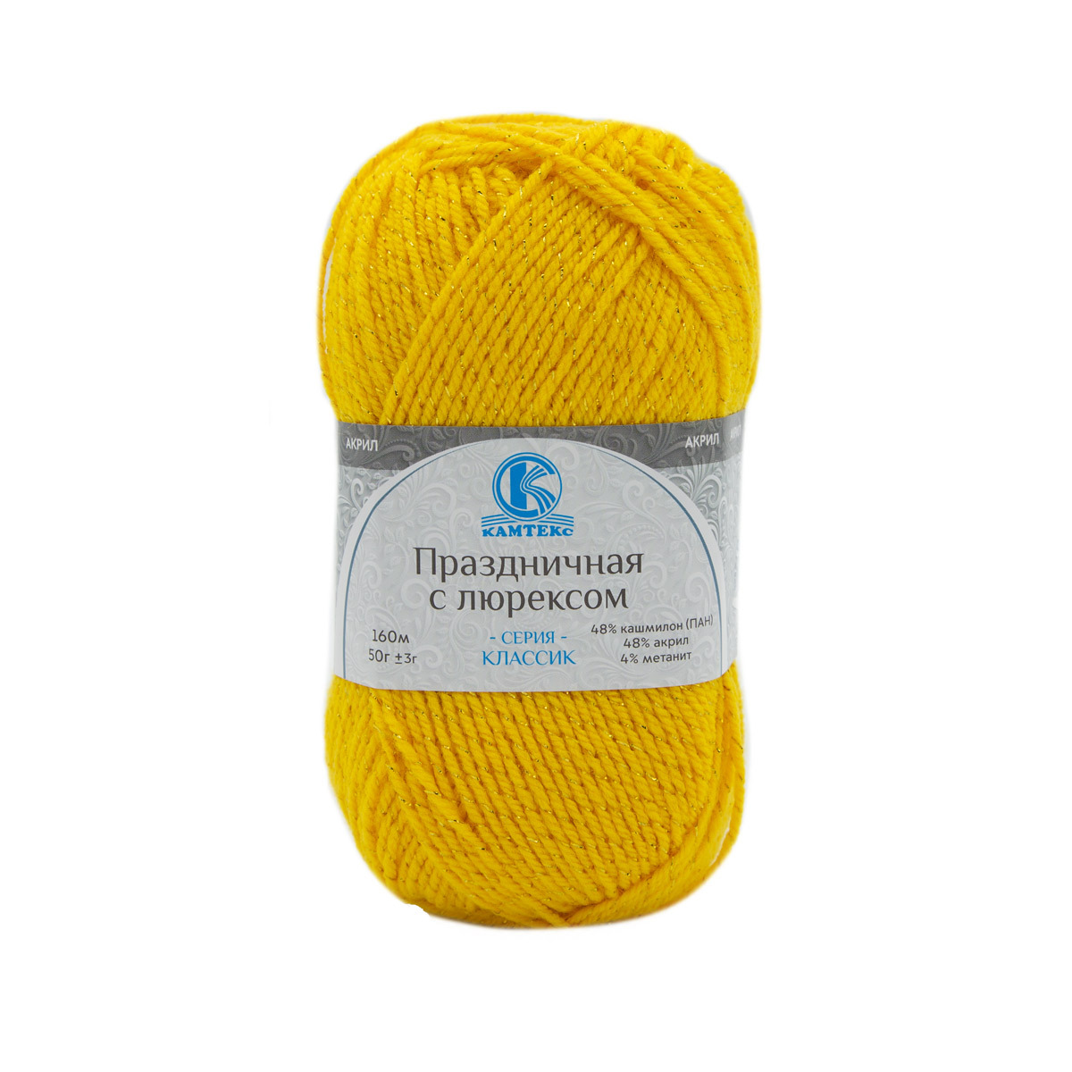 Пряжа Камтекс Праздничная с люрексом / уп.10 мот. по 50 г, 160 м, 104 желтый
