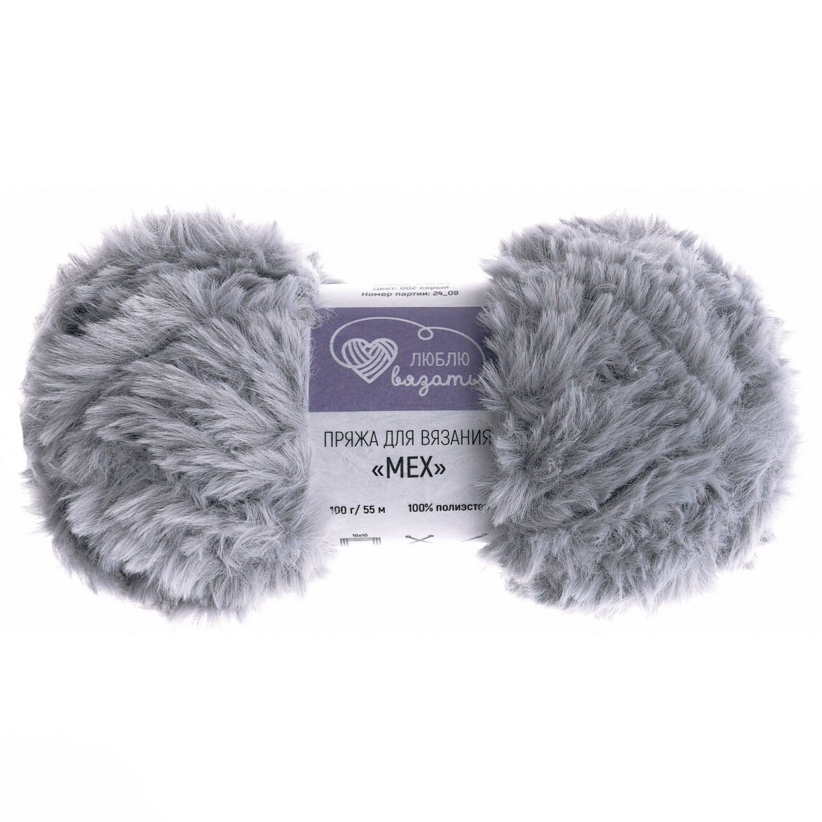 Пряжа Люблю вязать Мех / уп.3 мот. по 100 г, 55 м, 002 серый