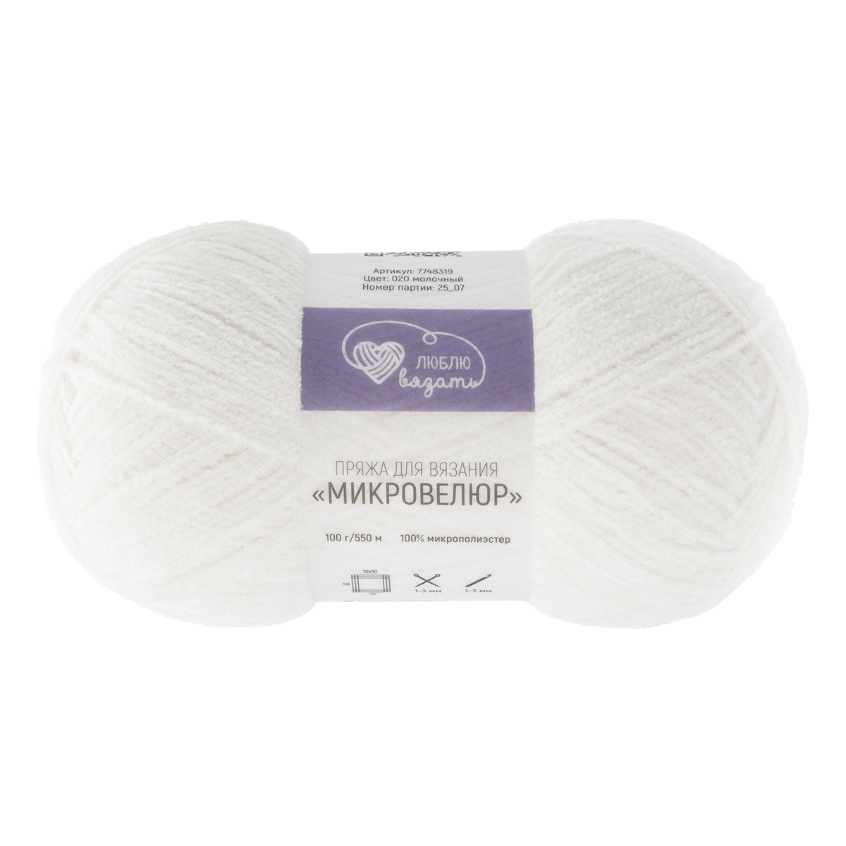 Пряжа Люблю вязать Микровелюр / уп.2 мот. по 100 г, 550м, 020 молочный