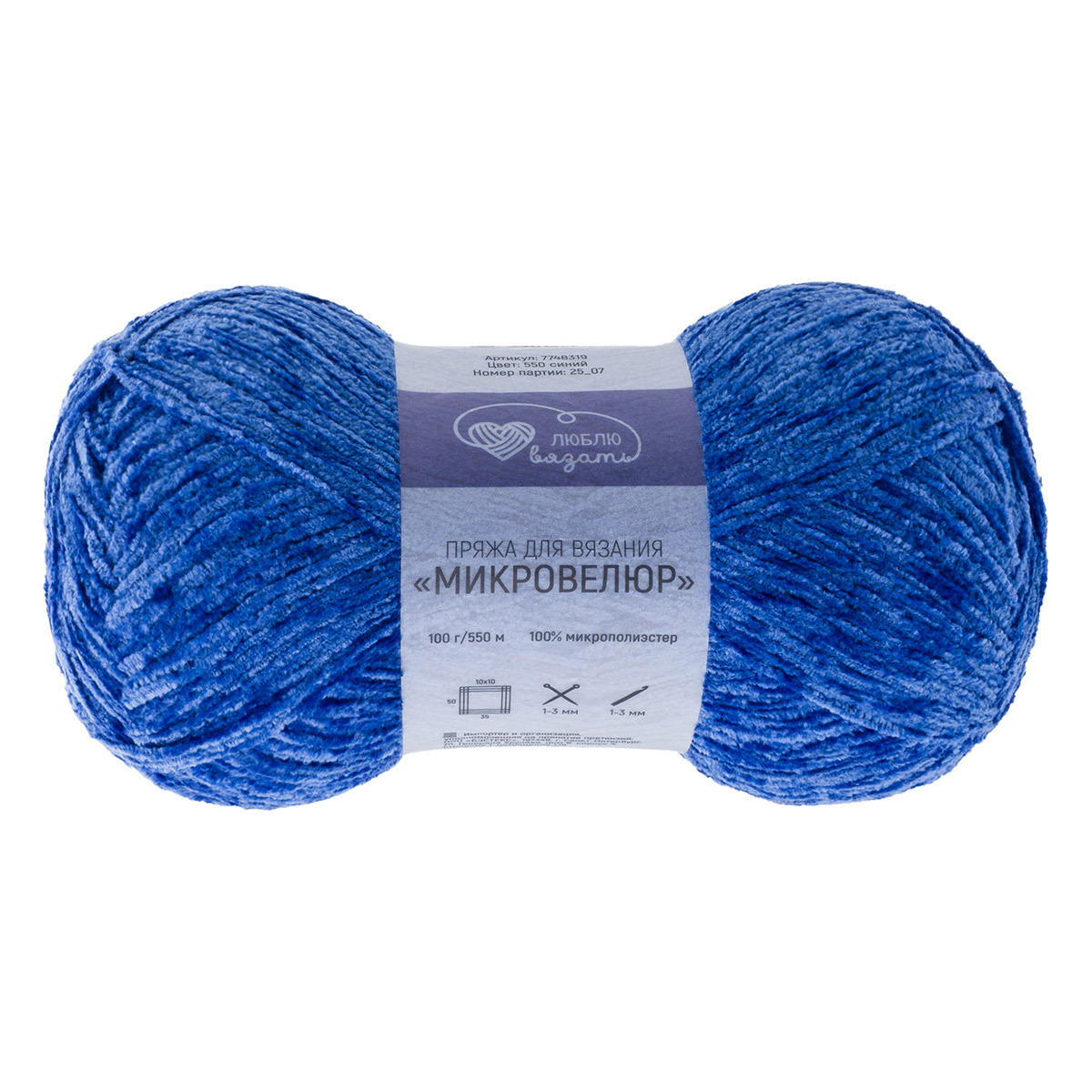 Пряжа Люблю вязать Микровелюр / уп.2 мот. по 100 г, 550м, 550 синий