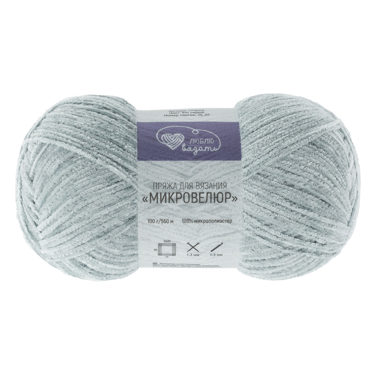 Пряжа Люблю вязать Микровелюр / уп.2 мот. по 100 г, 550м, 910 серый