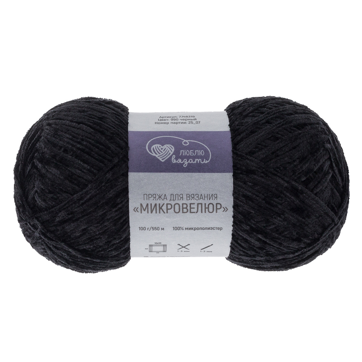 Пряжа Люблю вязать Микровелюр / уп.2 мот. по 100 г, 550м, 990 черный