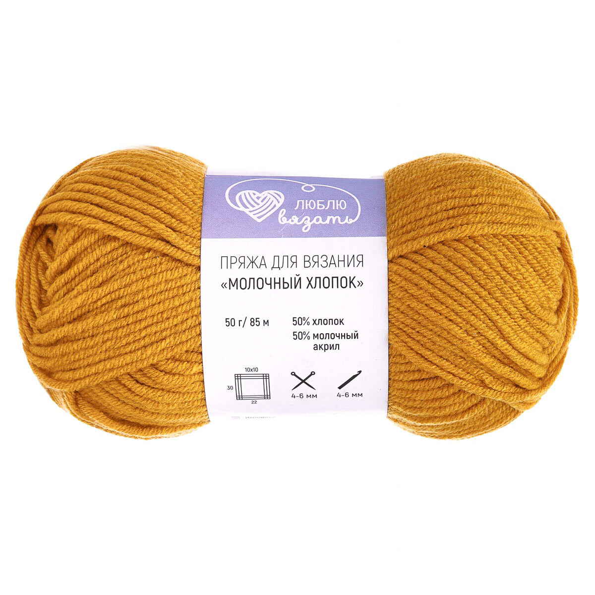 Пряжа Люблю вязать Молочный хлопок / уп.3 мот. по 50 г, 85 м, 40 горчичный