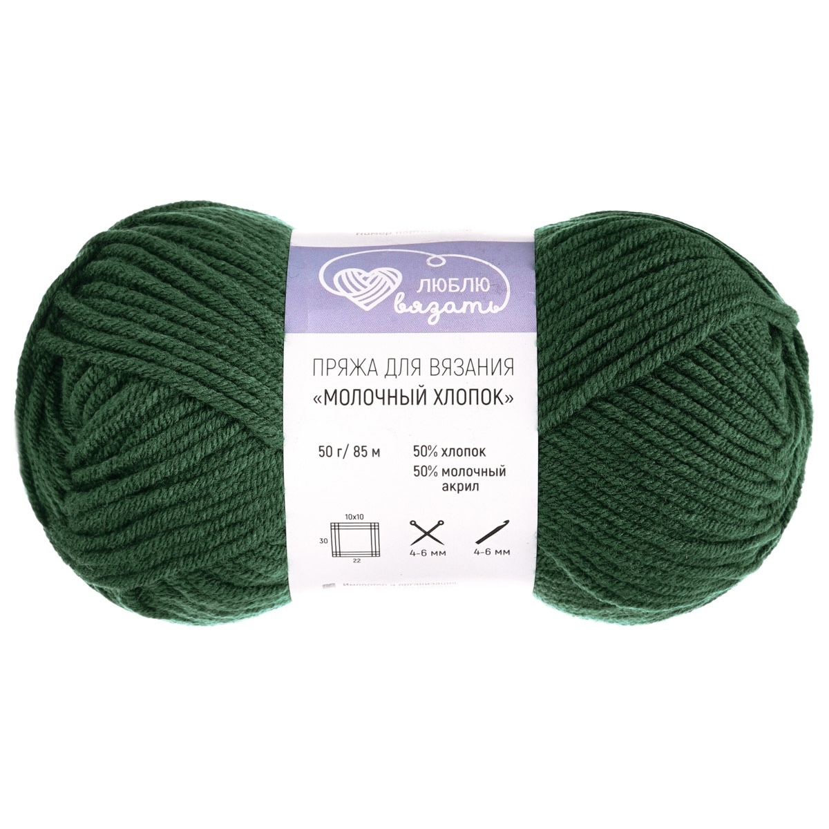 Пряжа Люблю вязать Молочный хлопок / уп.3 мот. по 50 г, 85 м, 41 темно-зеленый