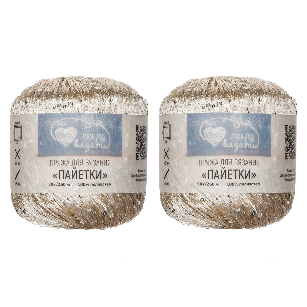 Пряжа Люблю вязать Пайетки / уп.2 мот. по 50 г, 260 м, 154 светлое золото/золото