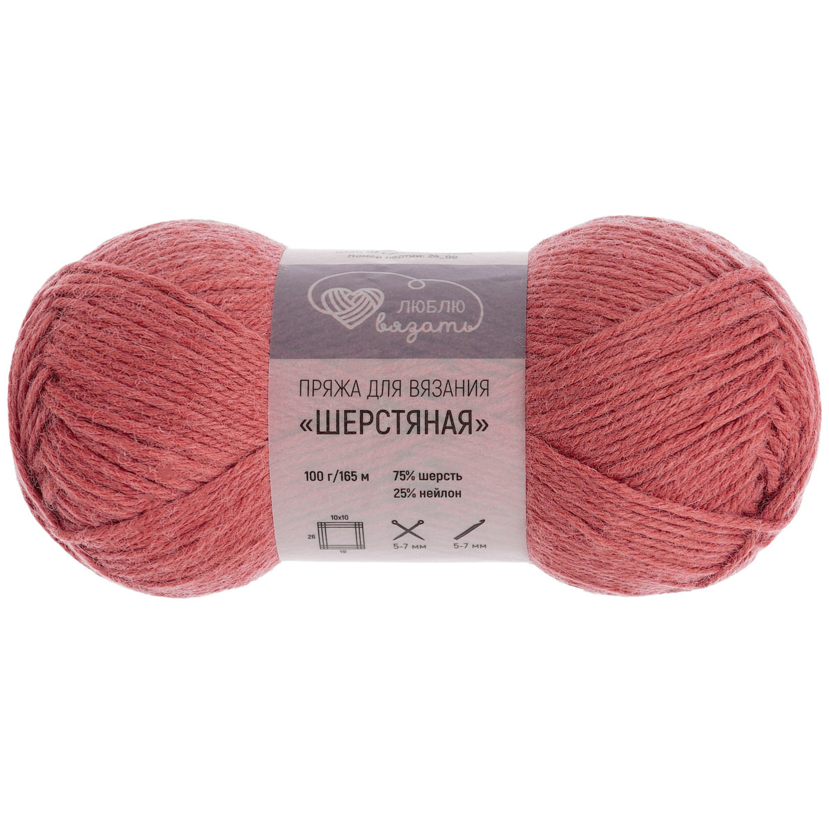 Пряжа Люблю вязать Шерстяная / уп.3 мот. по 100 г, 165 м, 117 пыльно-розовый