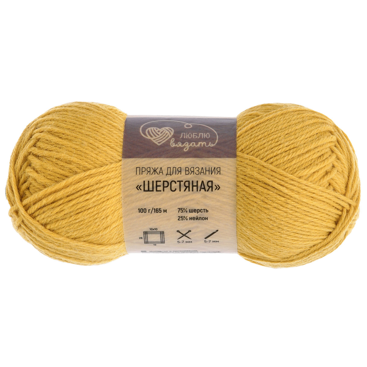 Пряжа Люблю вязать Шерстяная / уп.3 мот. по 100 г, 165 м, 313 солнечно-желтый