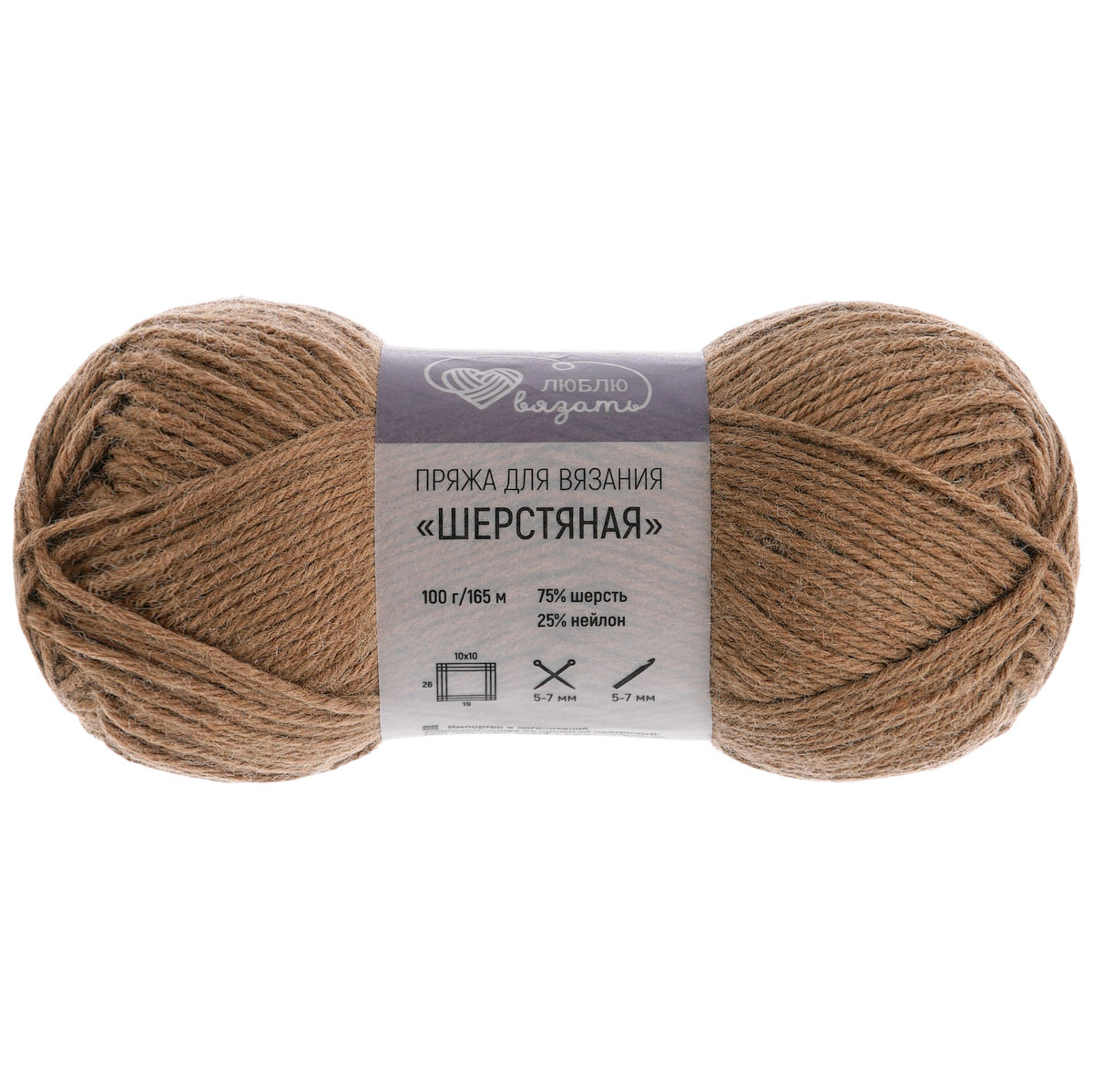 Пряжа Люблю вязать Шерстяная / уп.3 мот. по 100 г, 165 м, 819 светло-коричневый