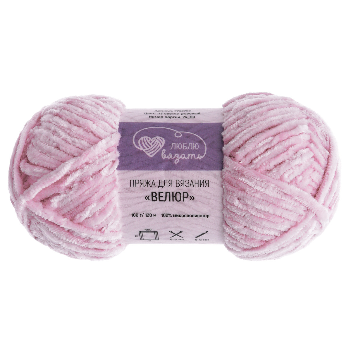 Пряжа Люблю вязать Велюр / уп.3 мот. по 100 г, 120 м, 113 светло-розовый
