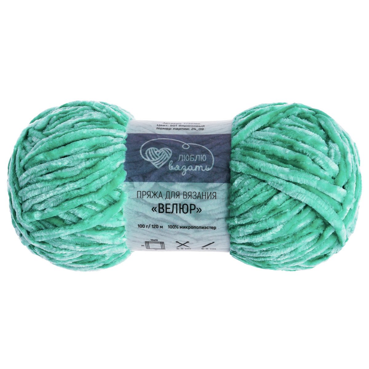 Пряжа Люблю вязать Велюр / уп.3 мот. по 100 г, 120 м, 501 бирюзовый