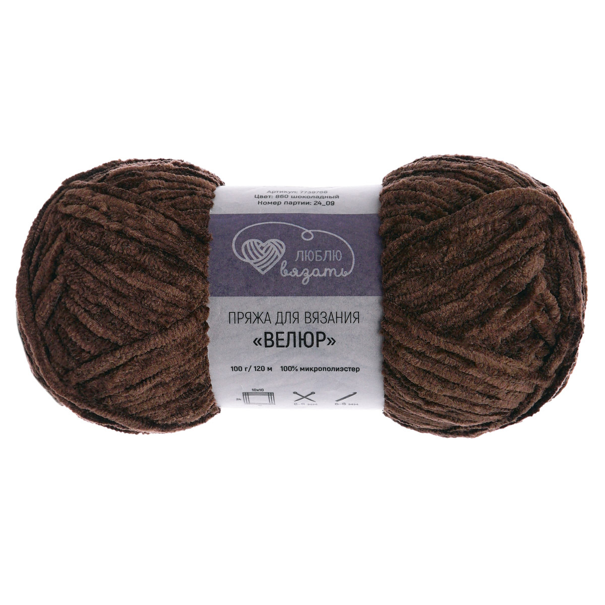 Пряжа Люблю вязать Велюр / уп.3 мот. по 100 г, 120 м, 860 шоколадный