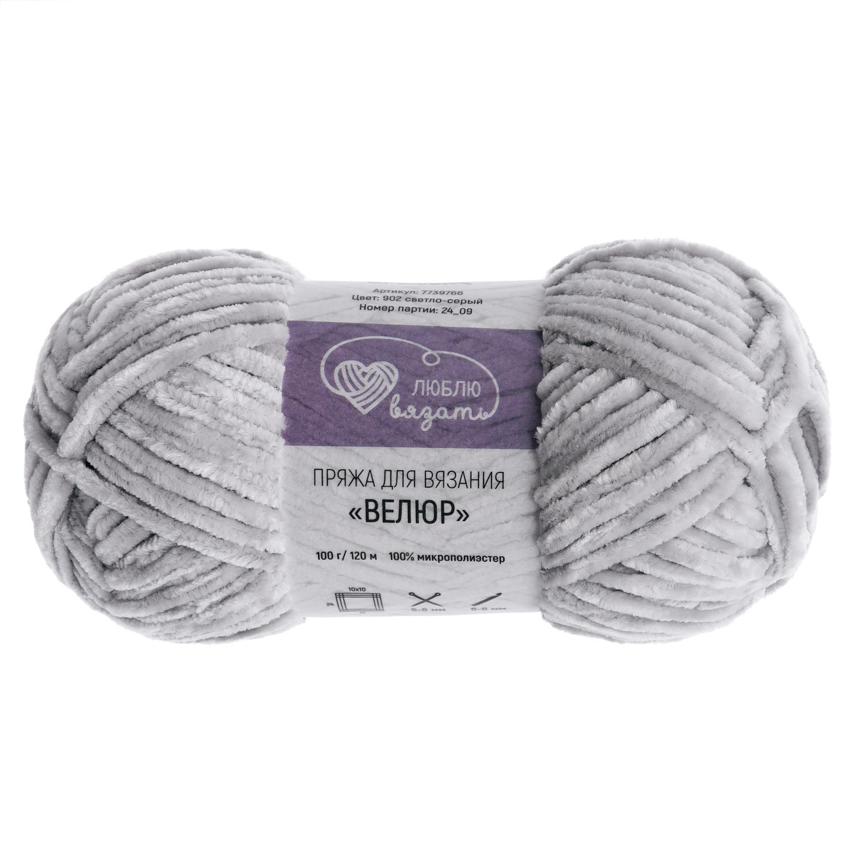 Пряжа Люблю вязать Велюр / уп.3 мот. по 100 г, 120 м, 902 светло-серый