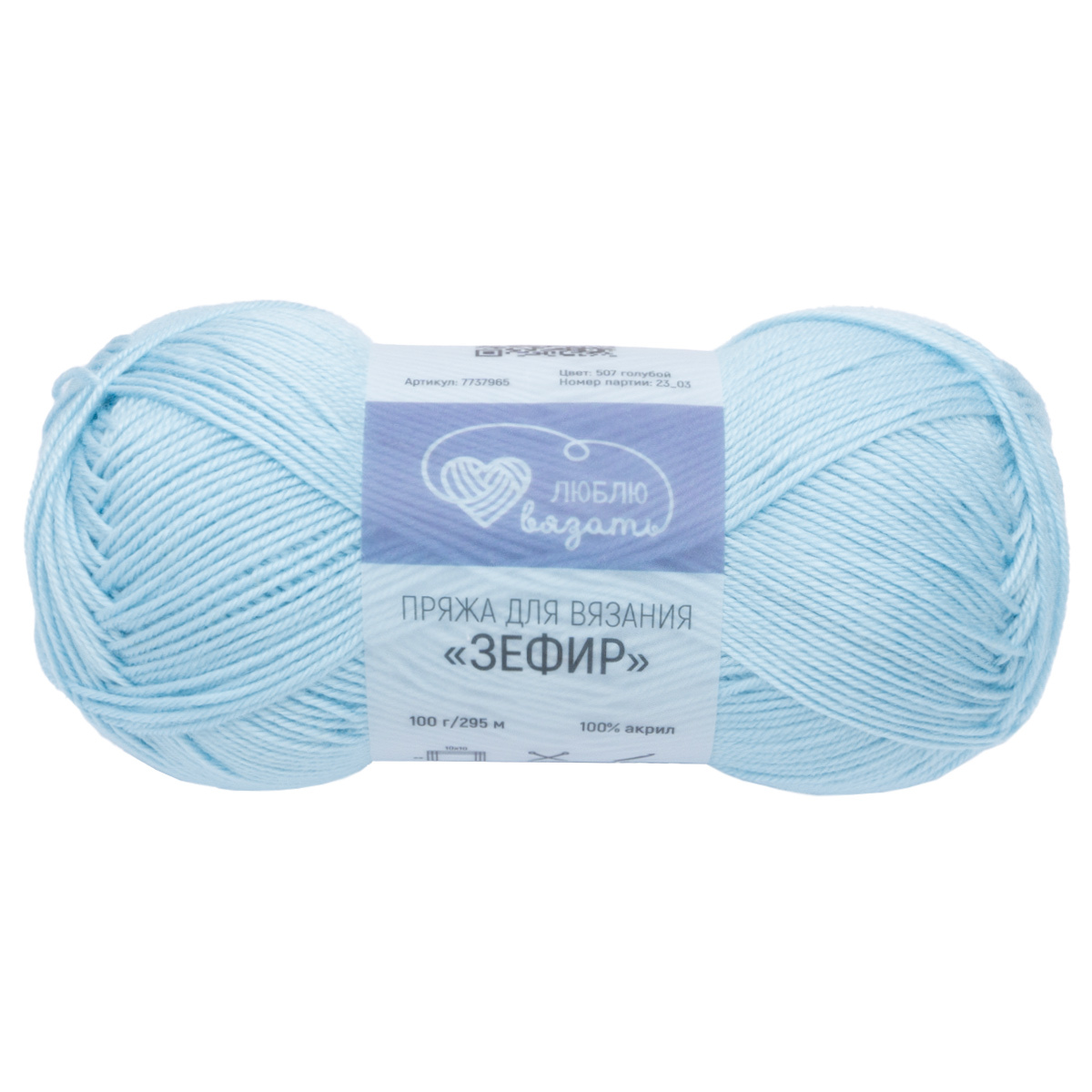 Пряжа Люблю вязать Зефир / уп.3 мот. по 100 г, 295 м, 507 голубой