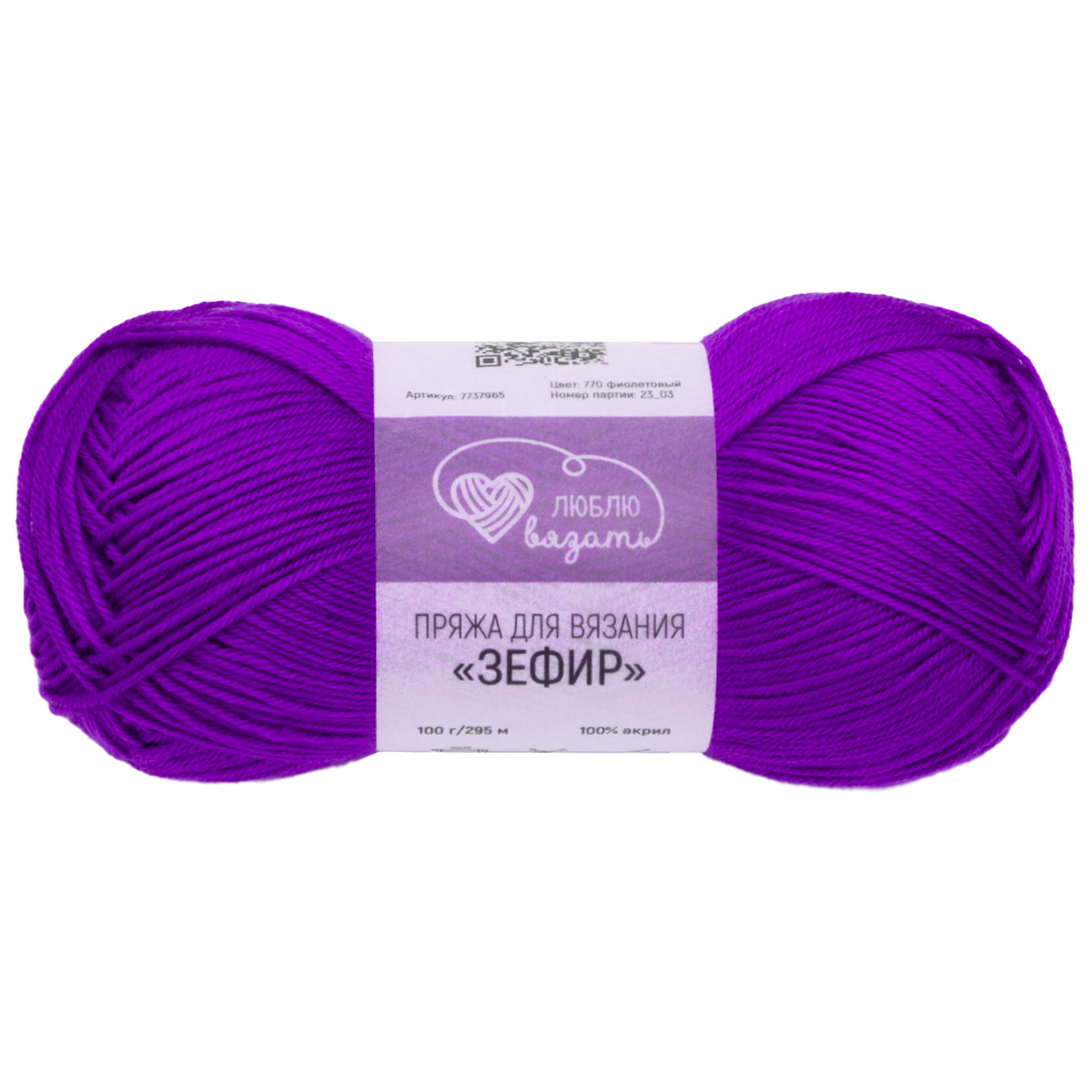 Пряжа Люблю вязать Зефир / уп.3 мот. по 100 г, 295 м, 770 фиолетовый