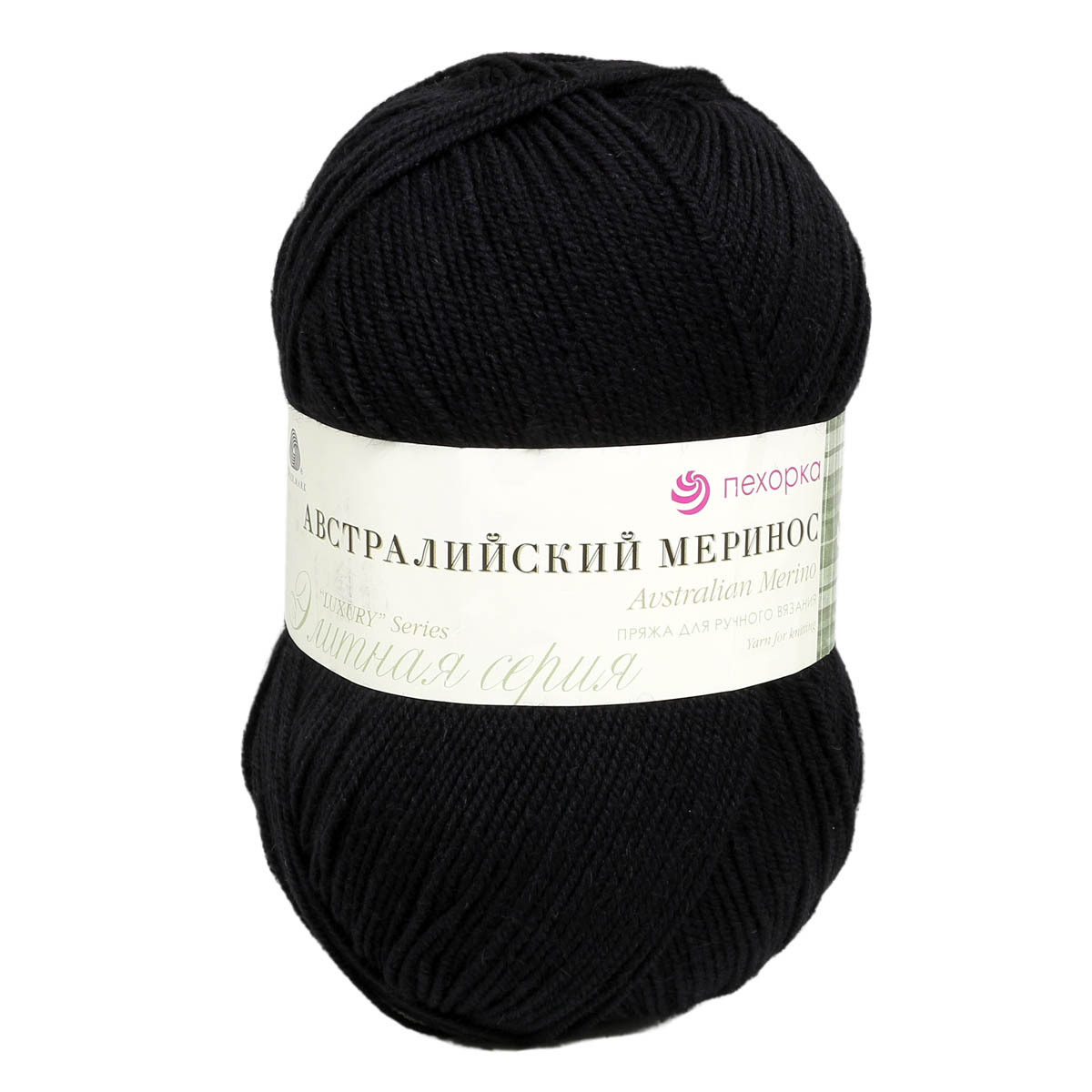 Пряжа Пехорка Австралийский меринос / уп.5 мот. по 100 г, 400 м, 02-Черный