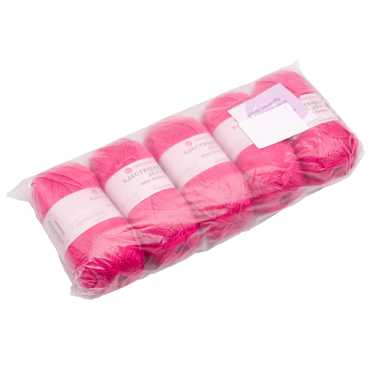 Пряжа Пехорка Блестящее лето / уп.5 мот. по 100 г, 380 м, 439 малиновый