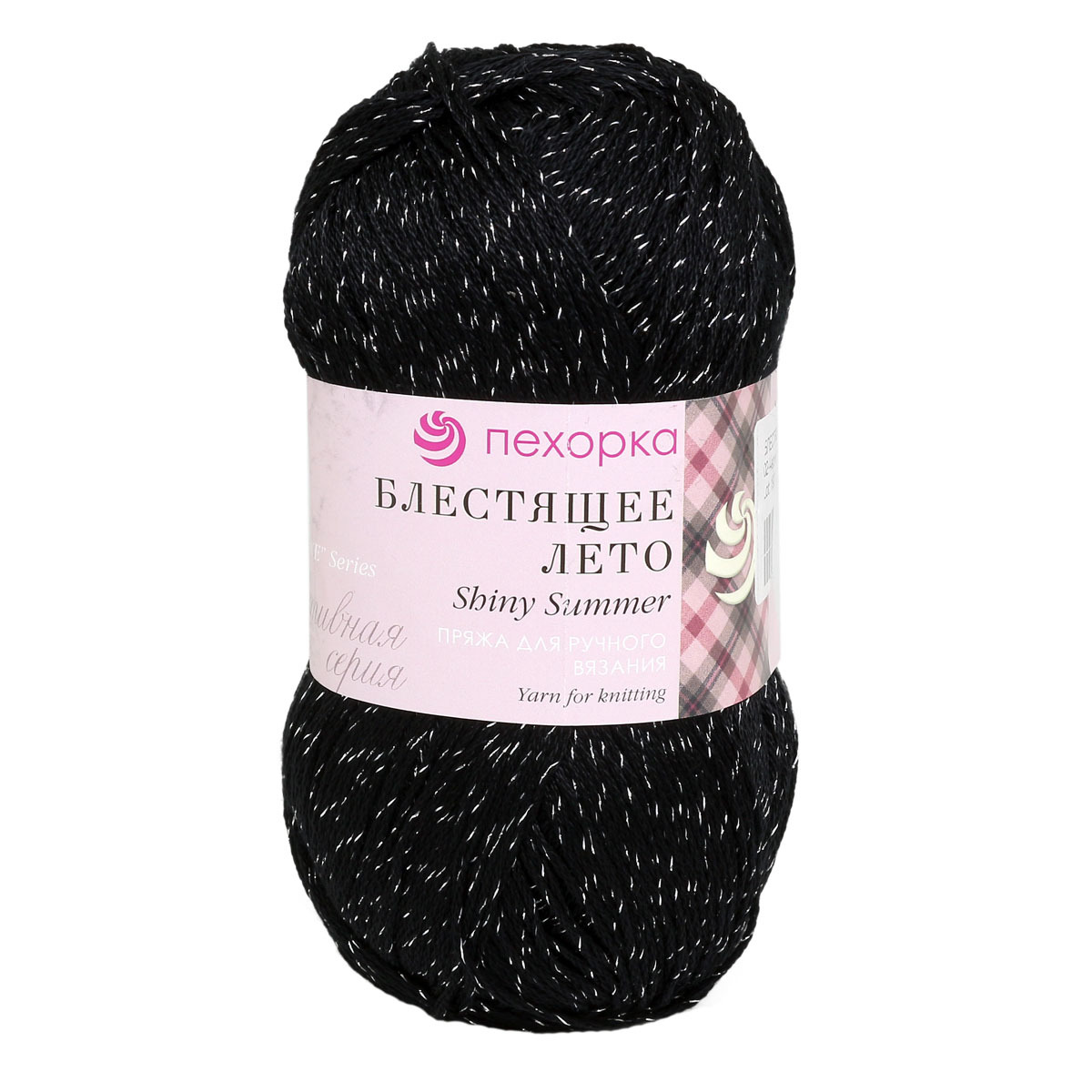 Пряжа Пехорка Блестящее лето / уп.5 мот. по 100 г, 380 м, 02-Черный
