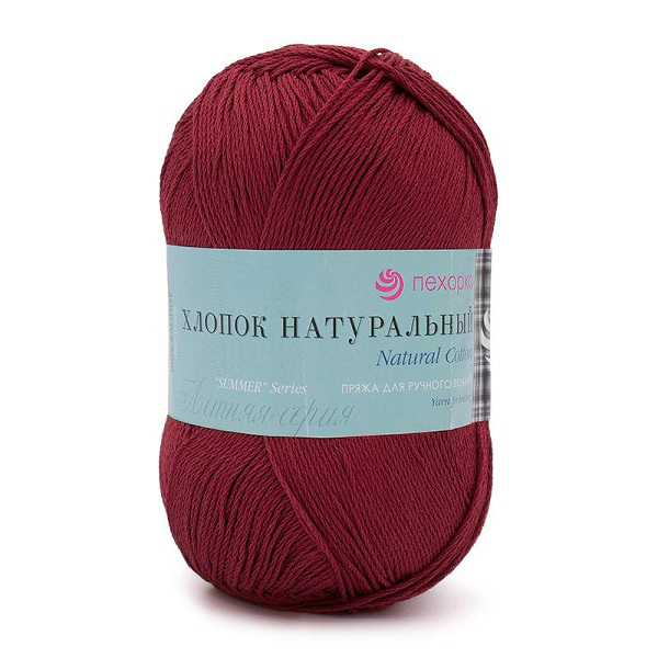 Пряжа Пехорка Хлопок натуральный / уп.5 мот. по 100 г, 425 м, цв.007 бордо
