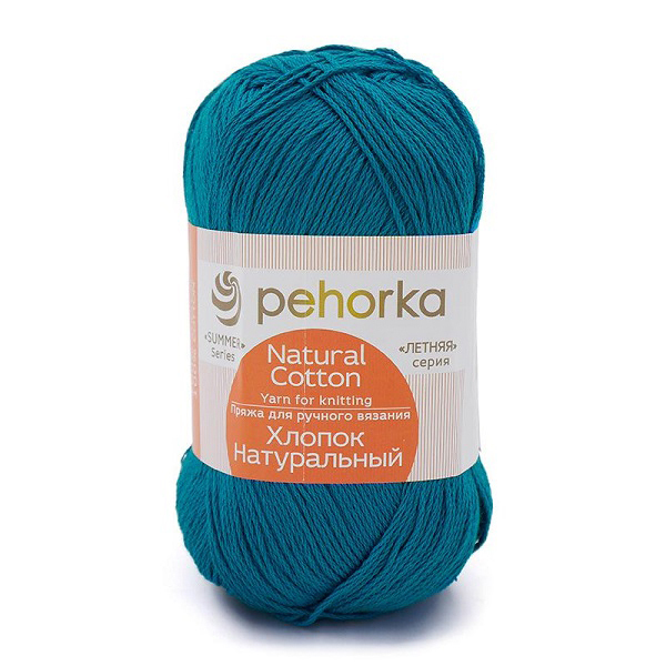 Пряжа Пехорка Хлопок натуральный / уп.5 мот. по 100 г, 425 м, цв.014 морская волна