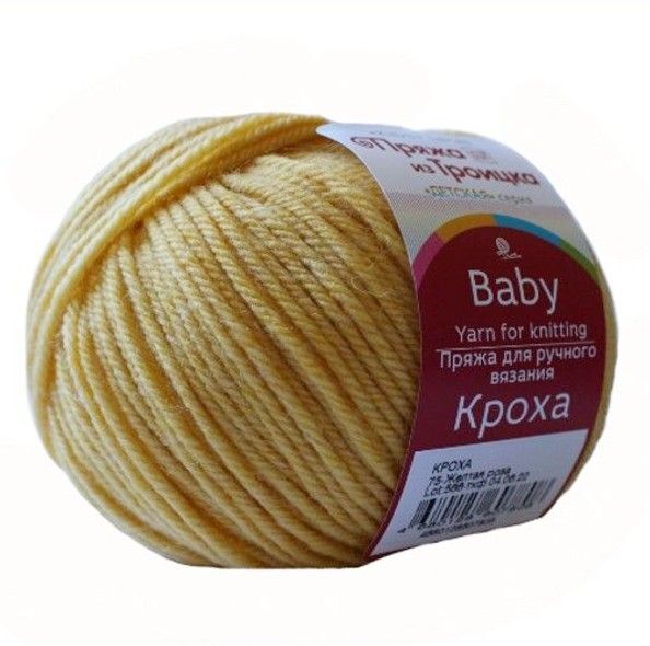 Пряжа Троицкая Кроха / уп.10 мот. по 50 г, 135м, 0075 желтая роза