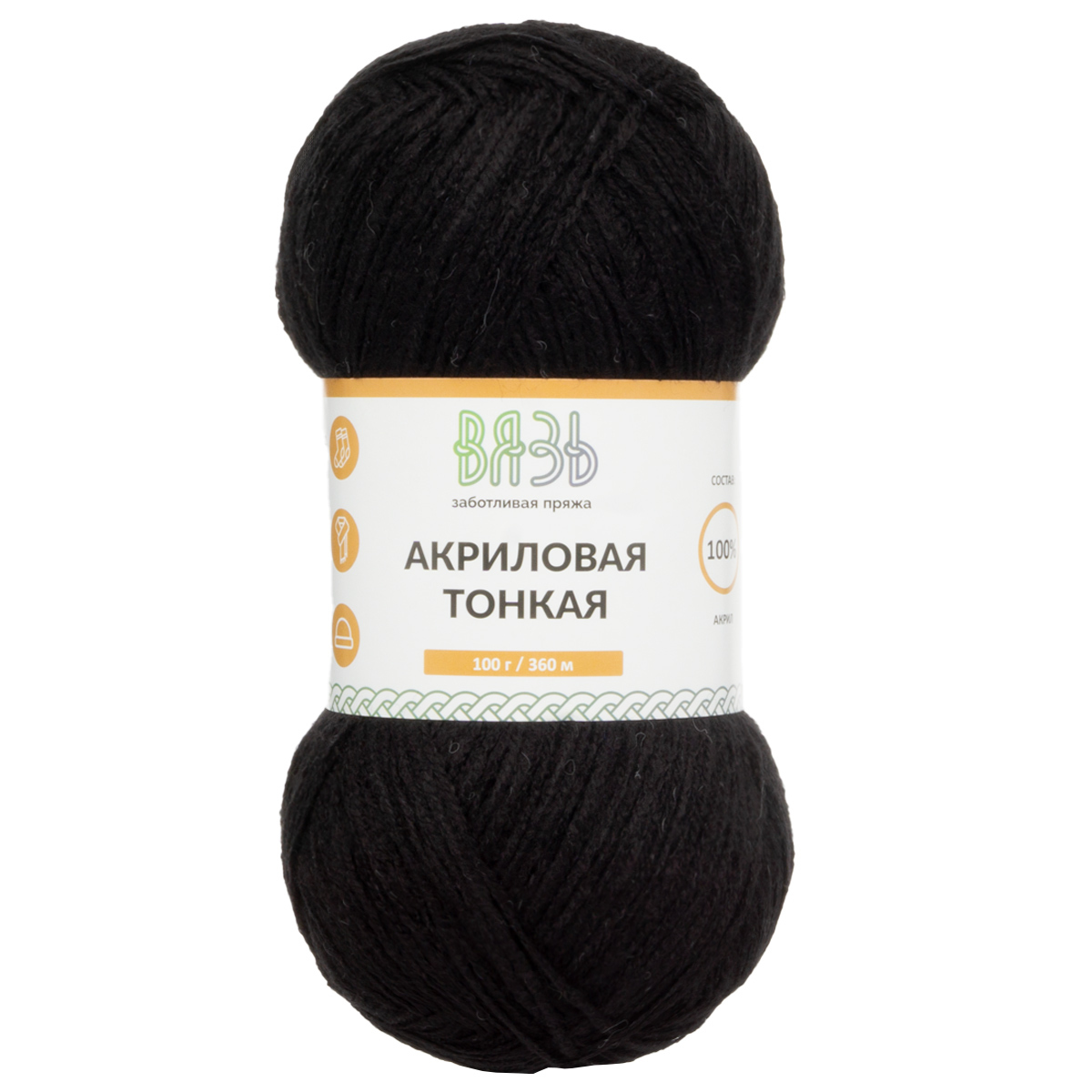 Пряжа Вязь Акриловая тонкая / уп.3 мот. по 100 г, 360 м, 990 черный