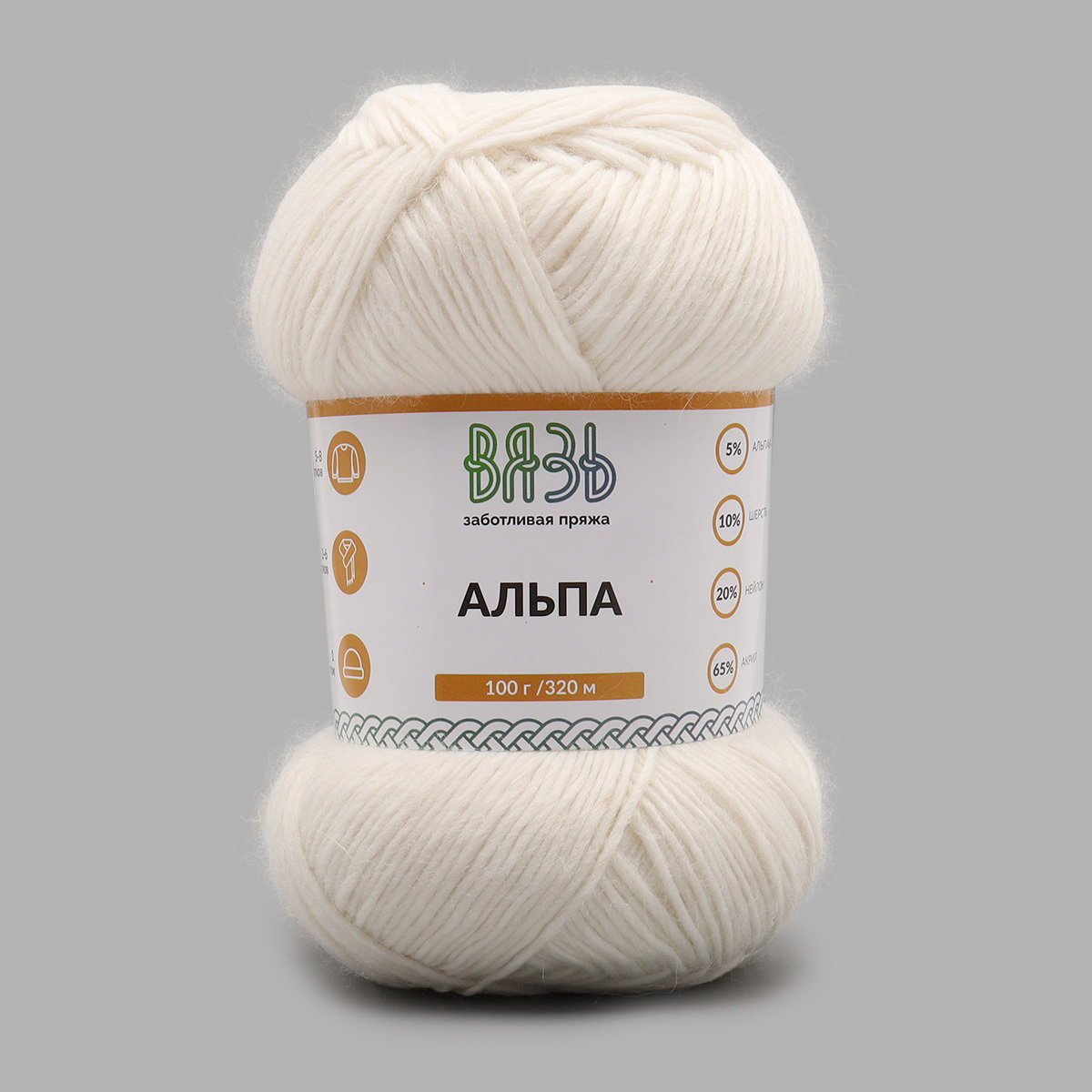 Пряжа Вязь Альпа / уп.3 мот. по 100 г, 320 м, 01 белый