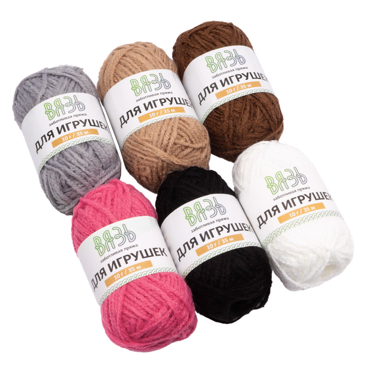 Пряжа Вязь Для игрушек / уп. 6 мот. по 10 г, 35 м, ассорти №3 Базовый микс