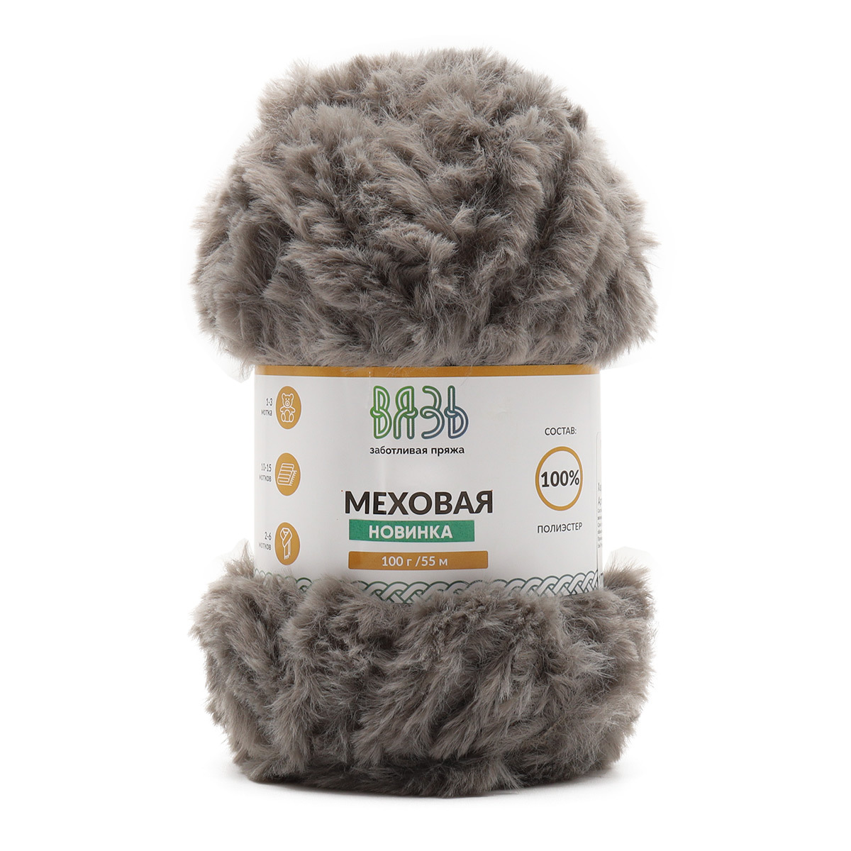 Пряжа Вязь Меховая / уп.3 мот. по 100 г, 55 м, 06 серый