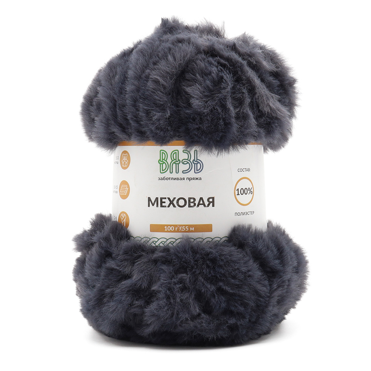 Пряжа Вязь Меховая / уп.3 мот. по 100 г, 55 м, 17 т.синий