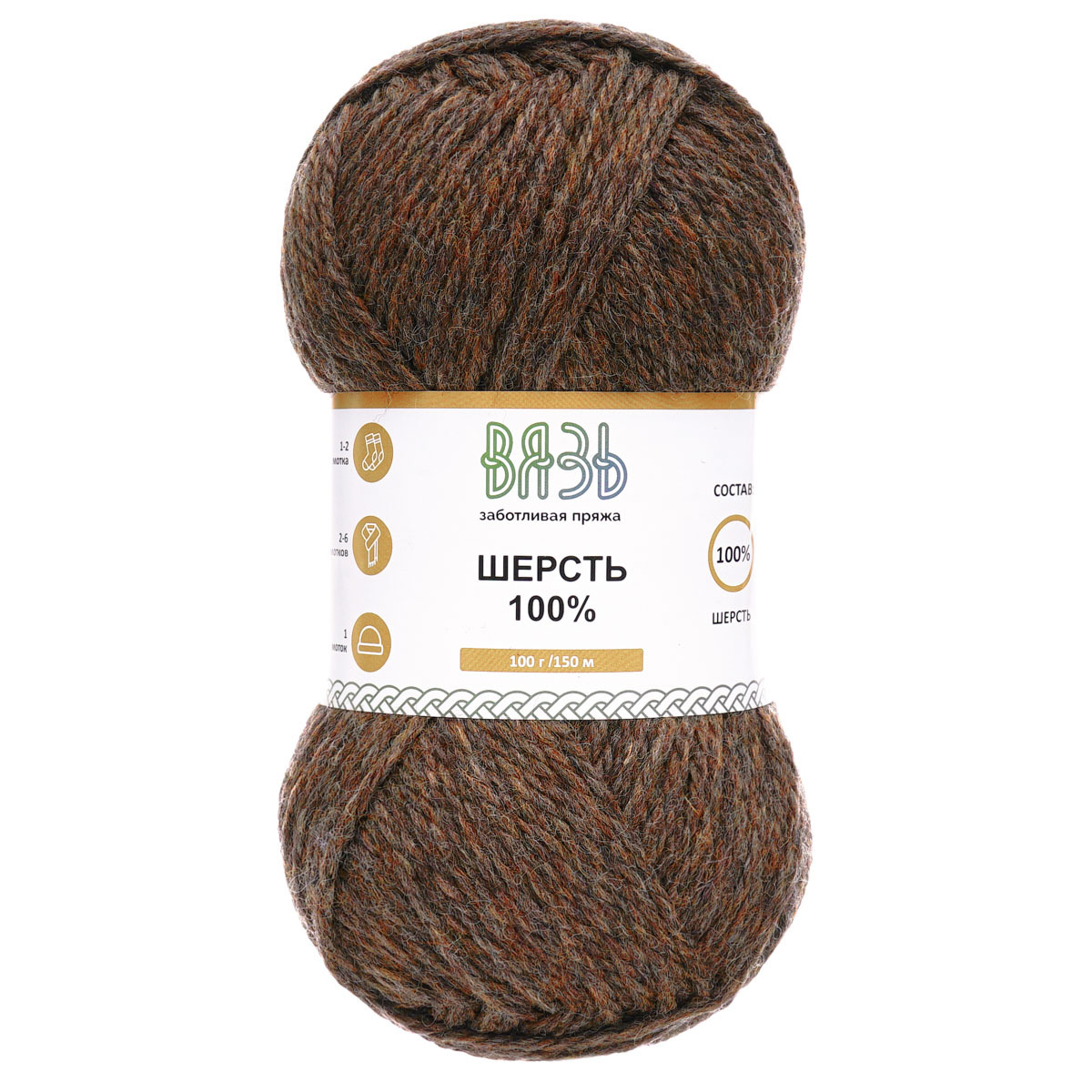 Пряжа Вязь Шерсть / уп.3 мот. по 100 г, 150 м, 006 коричневый меланж