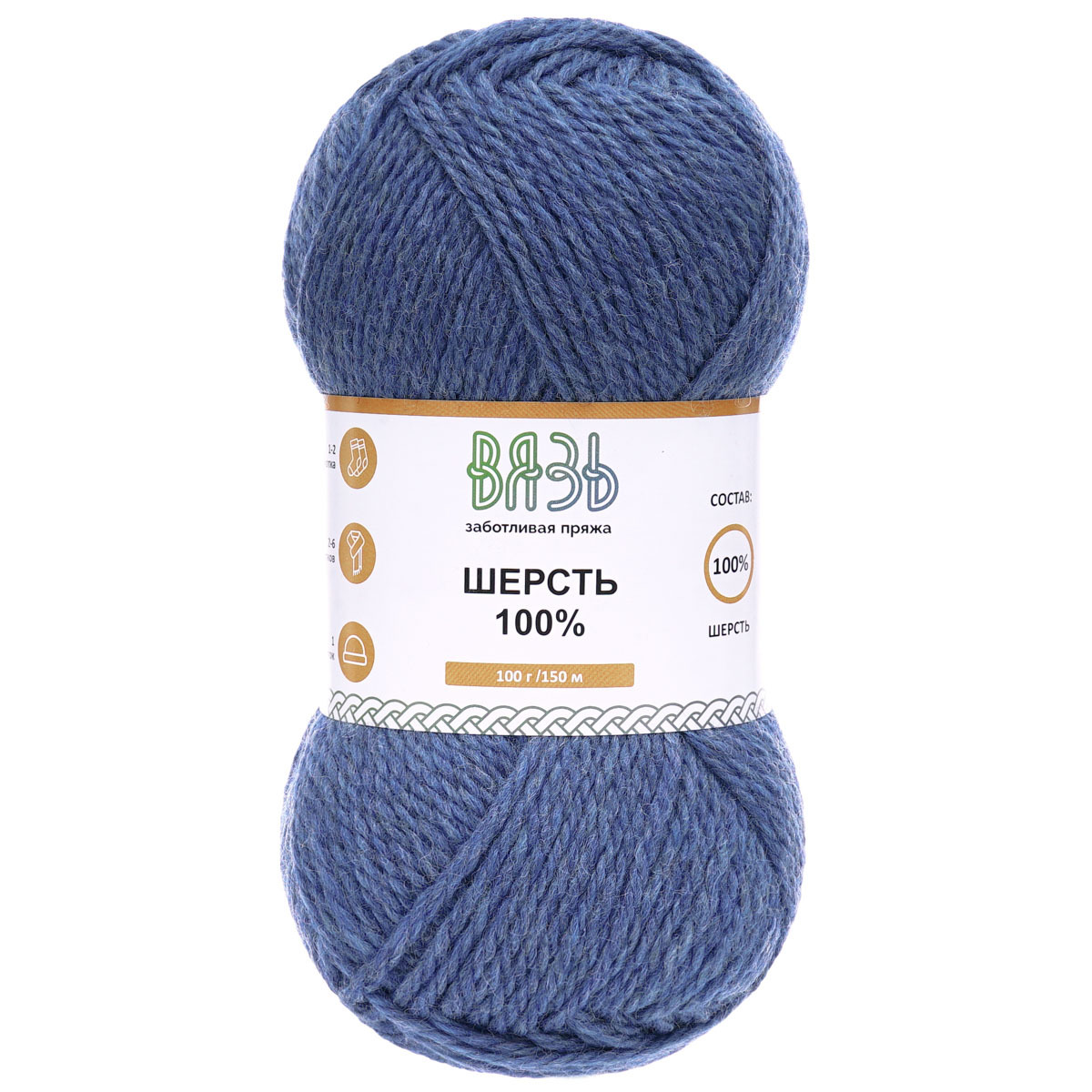Пряжа Вязь Шерсть / уп.3 мот. по 100 г, 150 м, 010 синий меланж