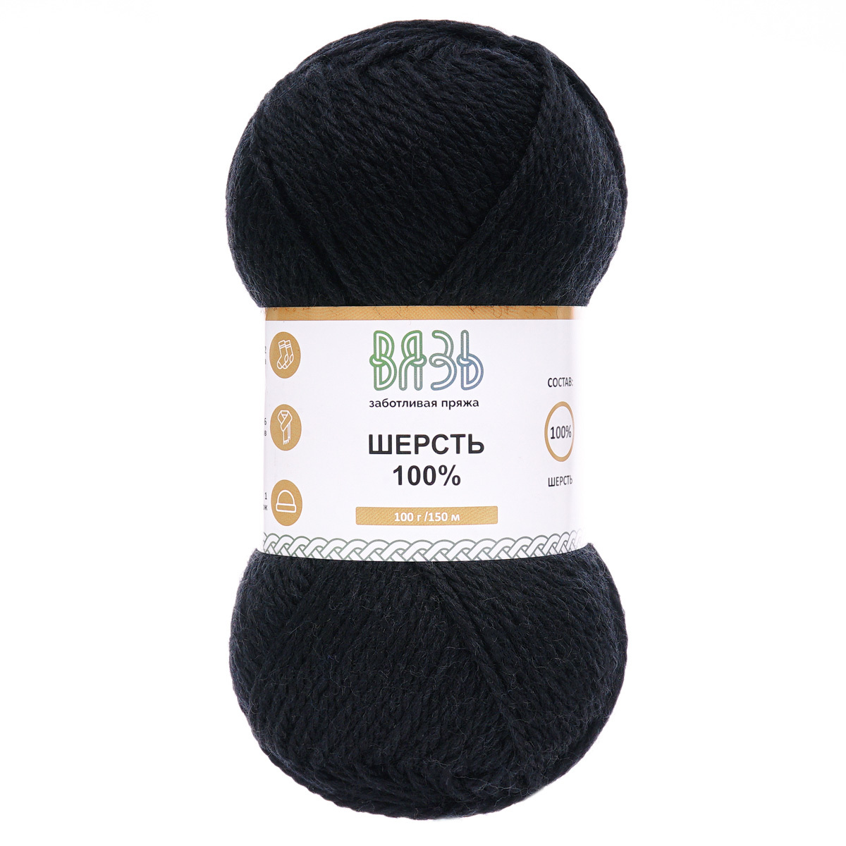 Пряжа Вязь Шерсть / уп.3 мот. по 100 г, 150 м, 020 черный меланж