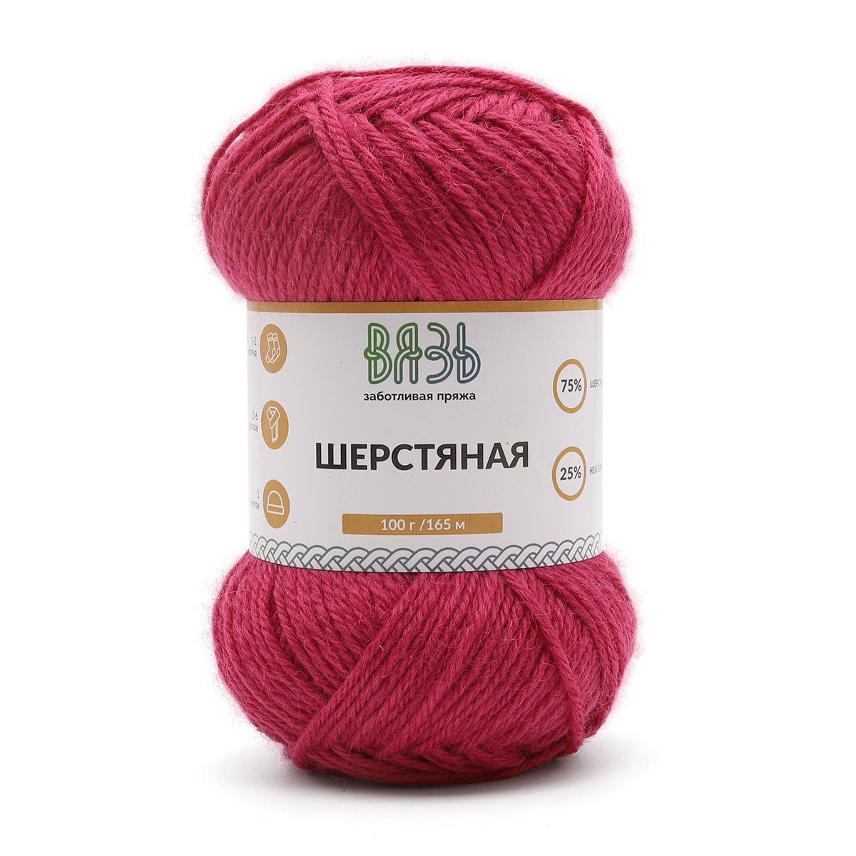 Пряжа Вязь Шерстяная / уп.3 мот. по 100 г, 165 м, 05 малиновый