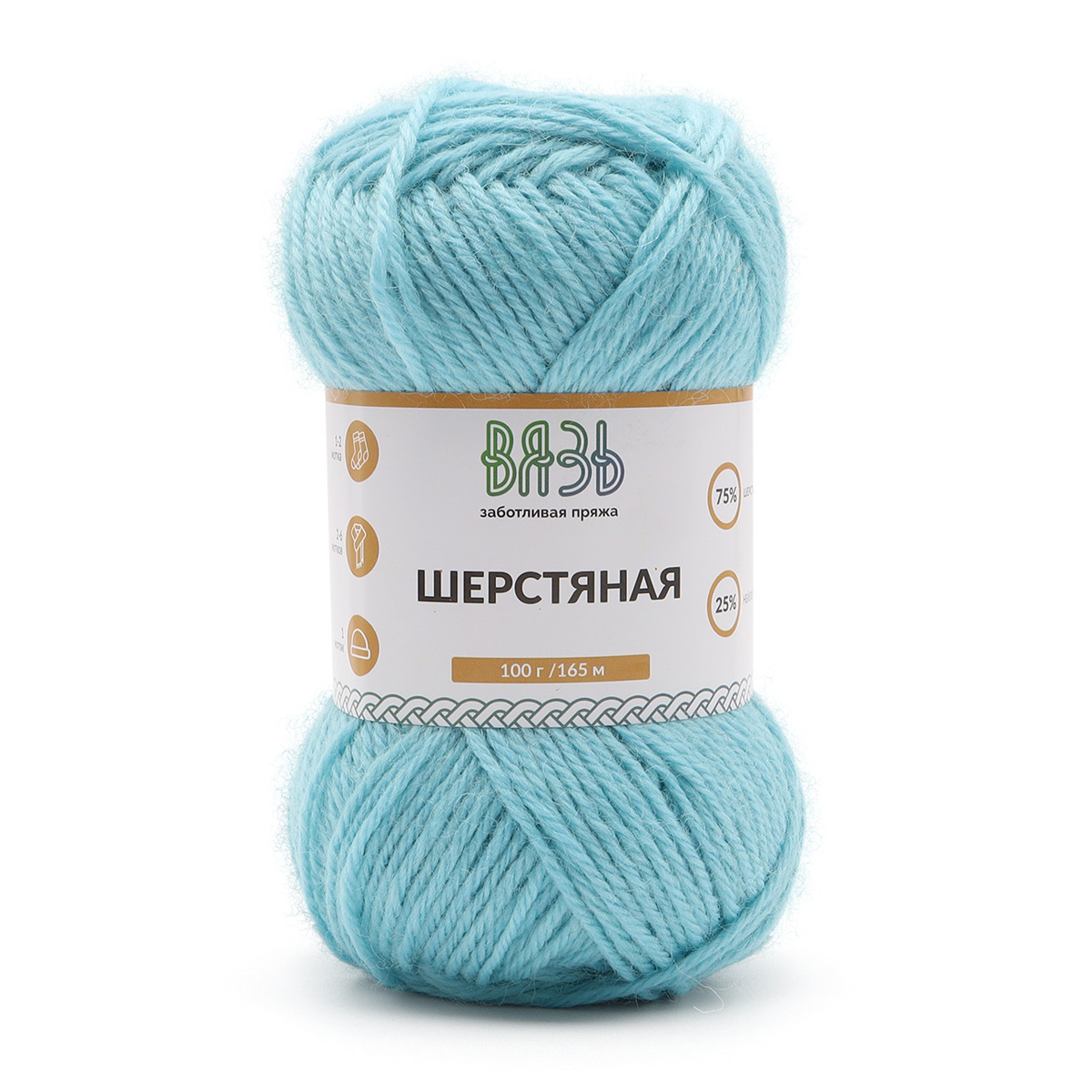 Пряжа Вязь Шерстяная / уп.3 мот. по 100 г, 165 м, 10 светло-голубой