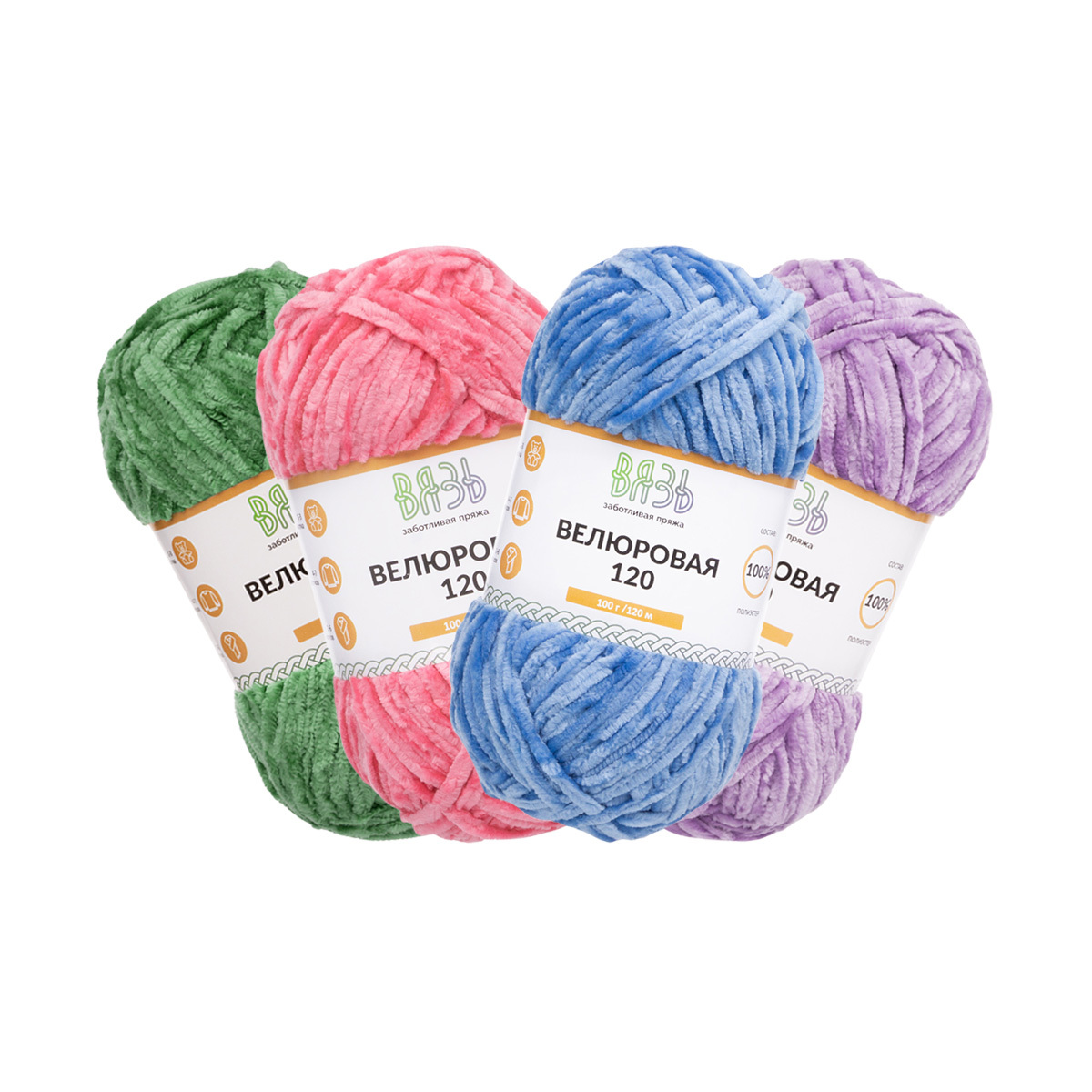 Пряжа Вязь Велюровая 120 / уп.4 мот. (4 цвета) по 100 г, 120 м, ассорти №3
