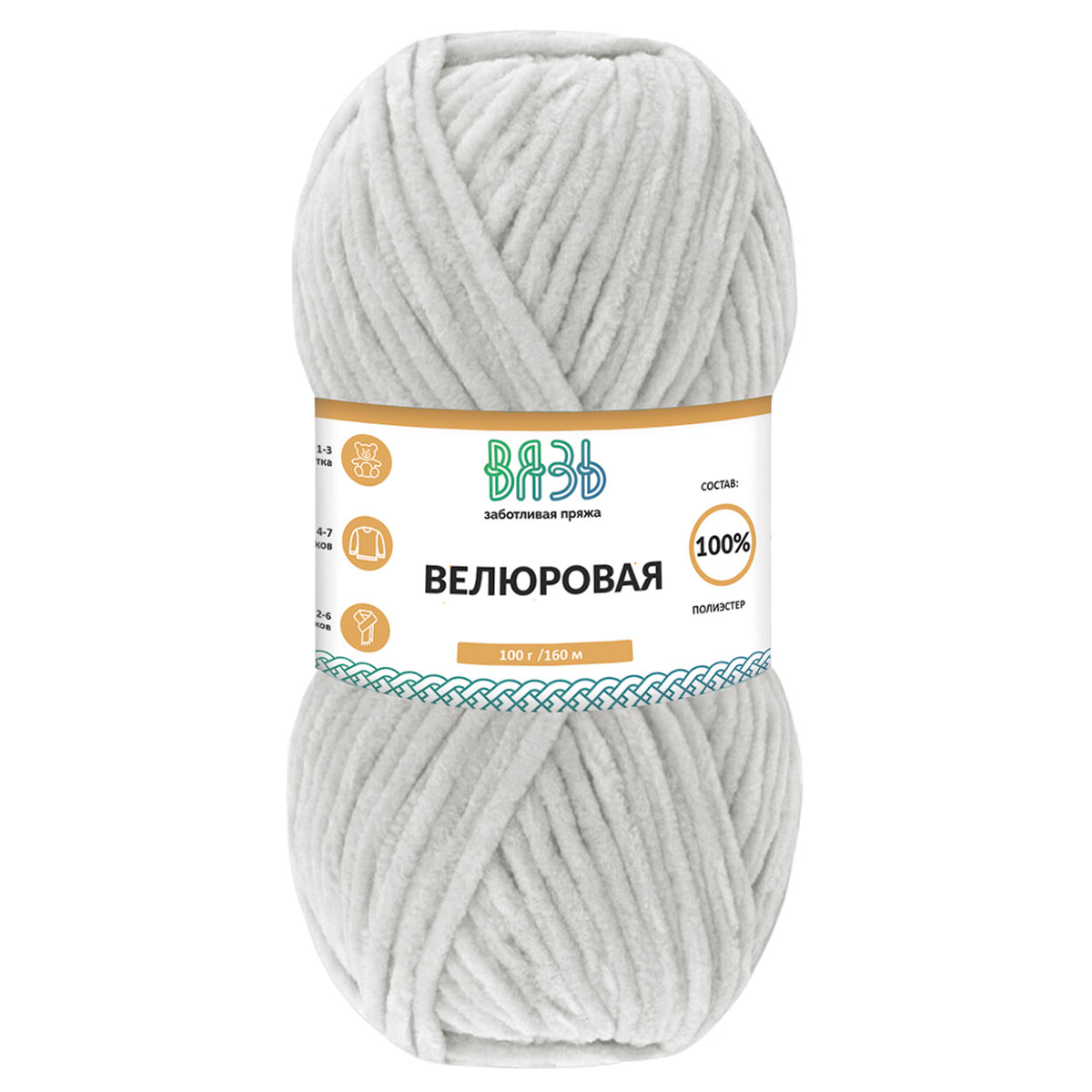 Пряжа Вязь Велюровая / уп.3 мот. по 100 г, 160 м, 08 св.серый