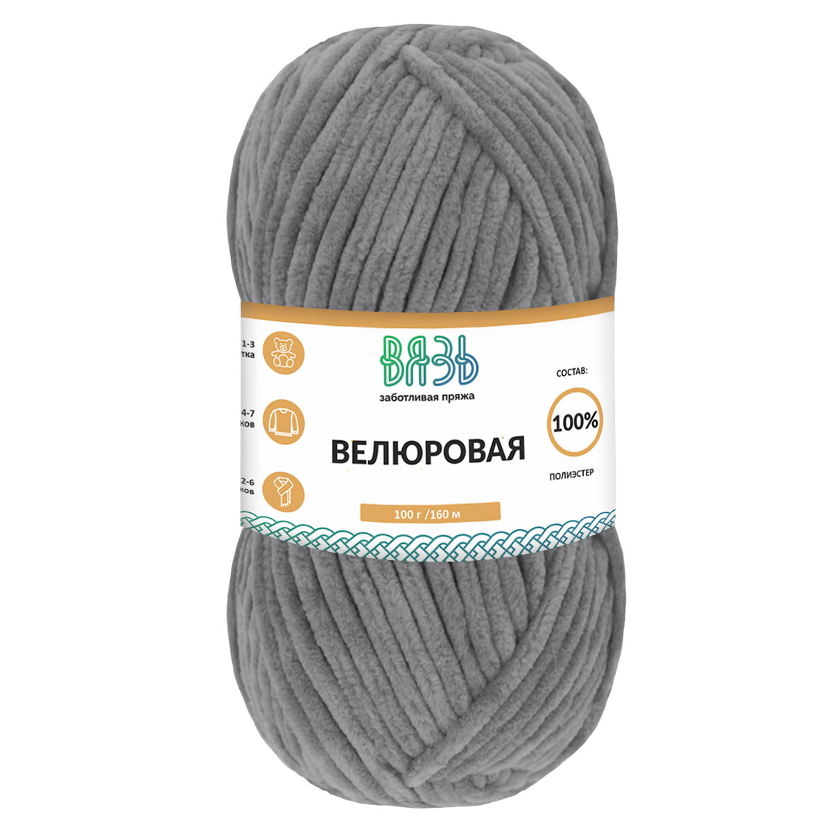 Пряжа Вязь Велюровая / уп.3 мот. по 100 г, 160 м, 09 т.серый
