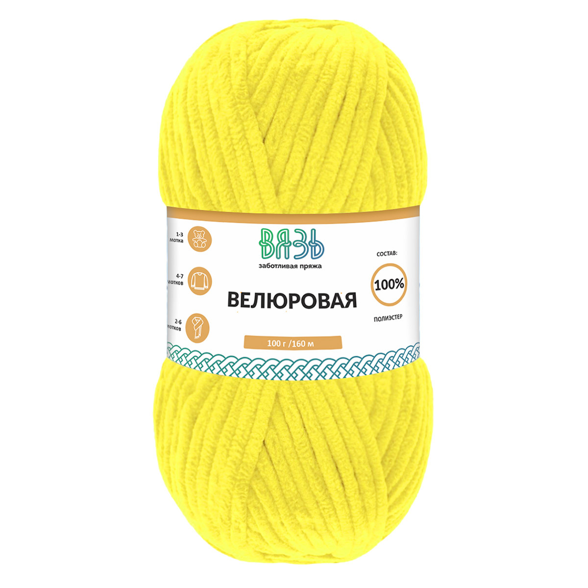 Пряжа Вязь Велюровая / уп.3 мот. по 100 г, 160 м, 12 желтый