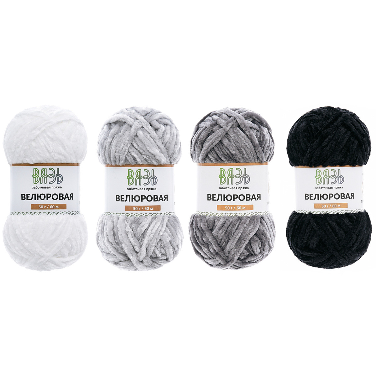 Пряжа Вязь Велюровая / уп.4 мот. (4 цвета) по 50 г, 60 м, ассорти 01 монохромный микс
